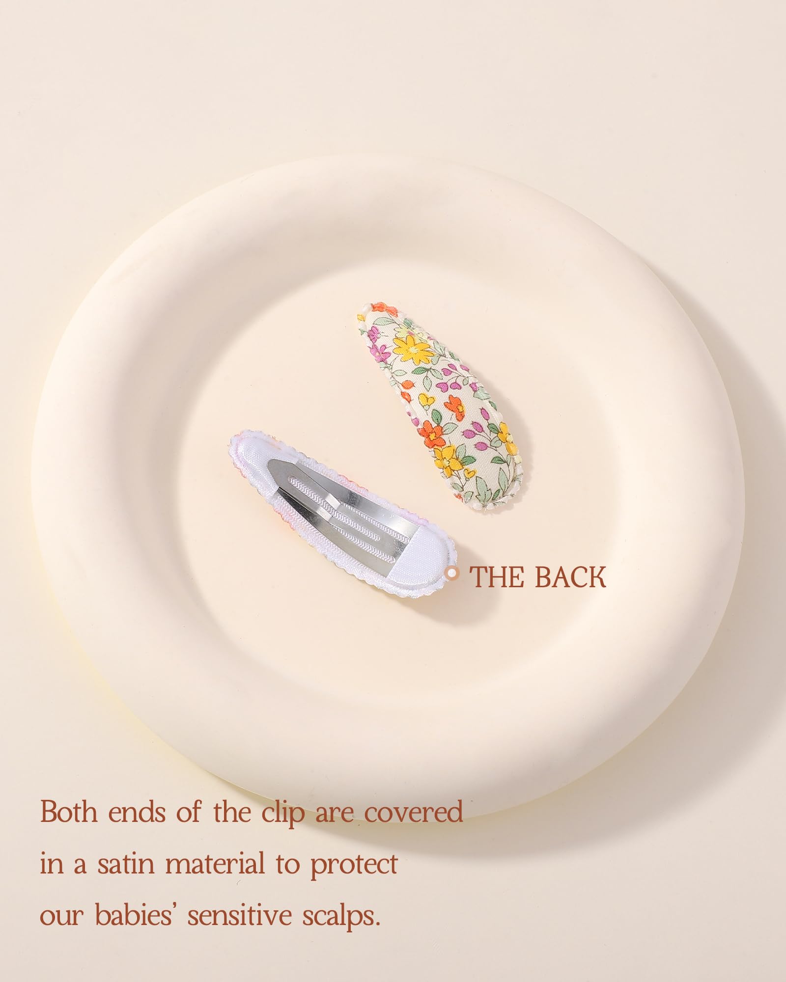 - Q: How many hair clips are included in the package? A: The package includes a total of 40 snap hair clips, featuring a variety of designs such as solid colors, floral prints, and patterns.