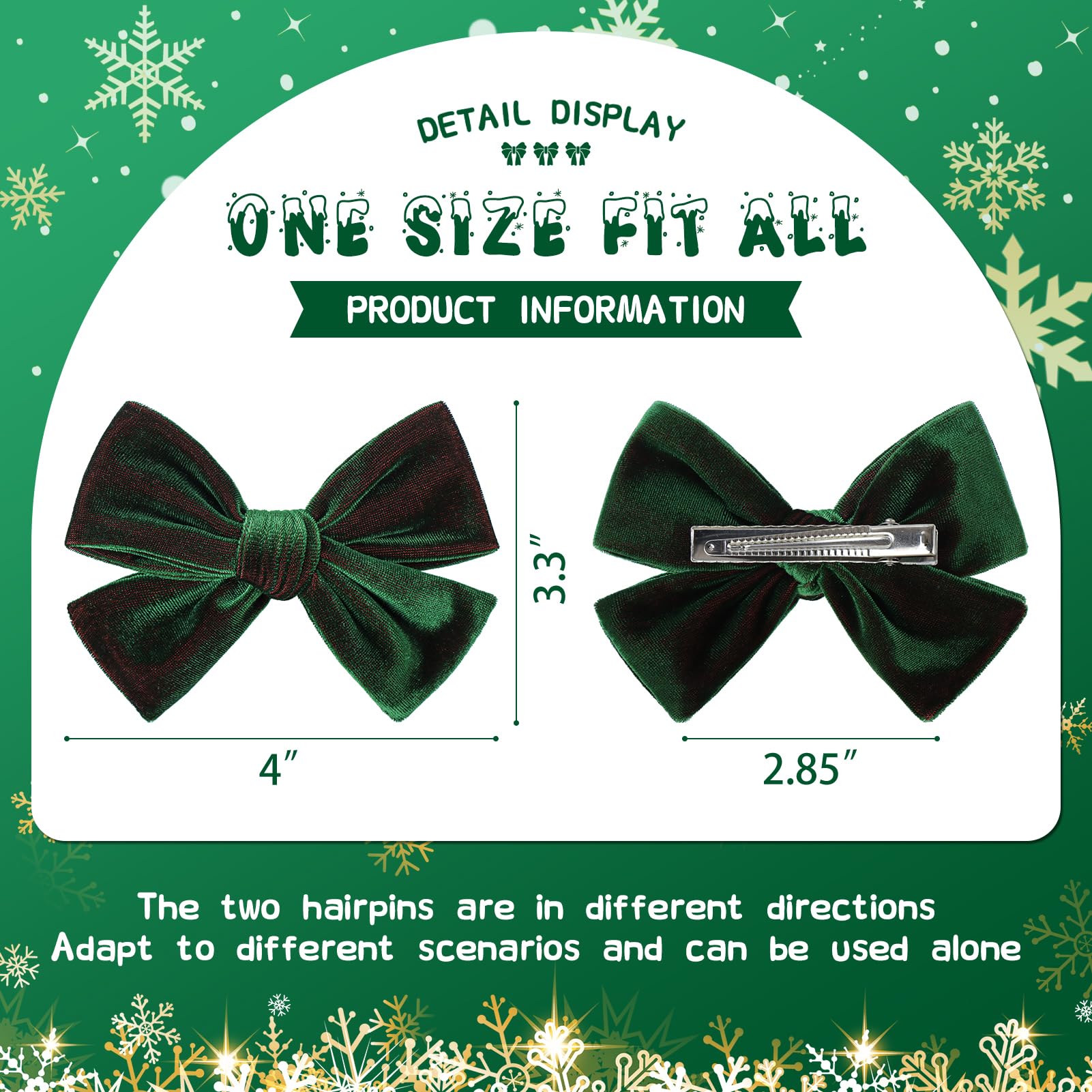 - Q: Do these hair accessories come in different colors? A: This specific set features green velvet bows, perfect for St. Patrick's Day, but additional styles may be available in other colors.