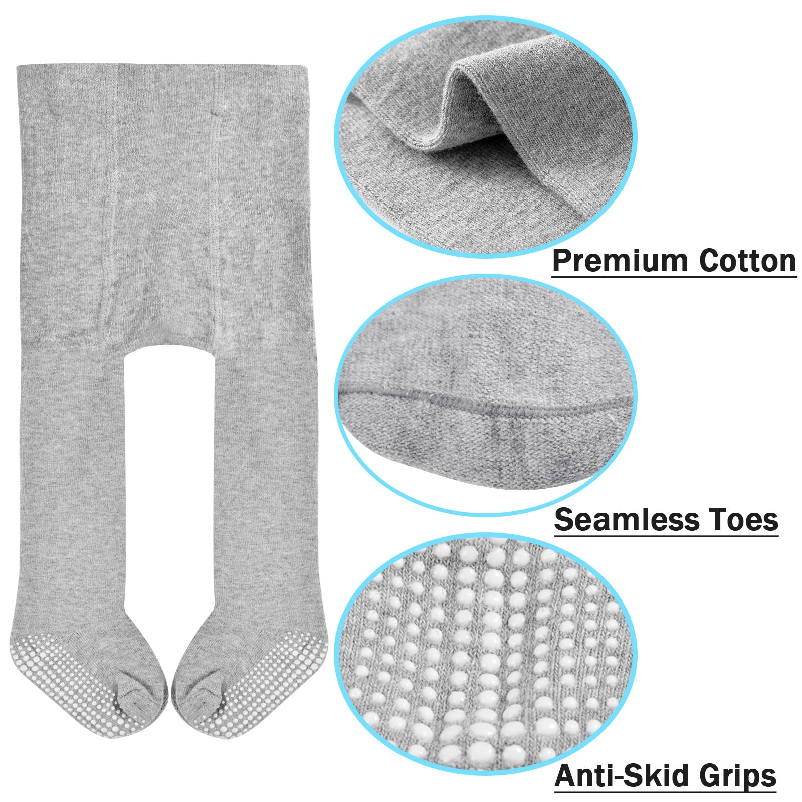 - Q: How does the non-slip feature work? A: The tights feature extra strong grippers that cover almost the entire sole, designed to prevent slipping on hardwood floors and smooth surfaces.