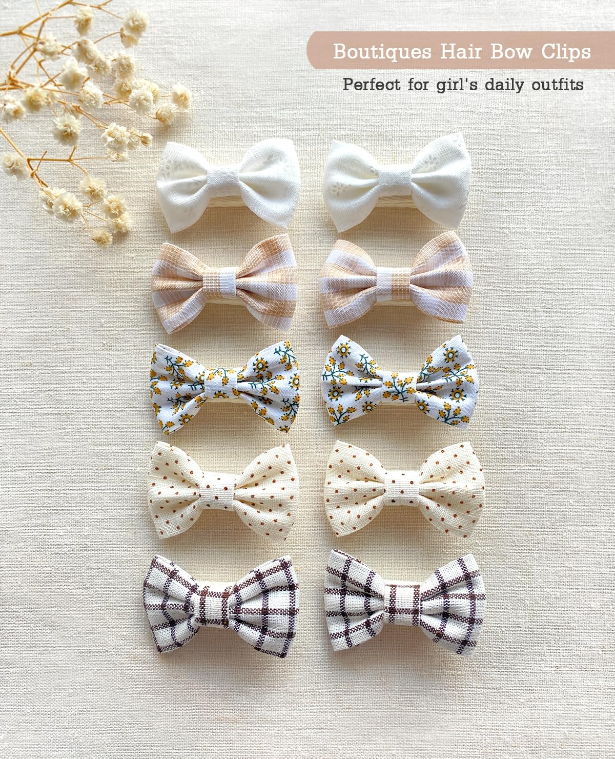 - Q: What patterns and colors do the hair bows come in? A: The hair bows come in a variety of neutral and muted patterns, including solid colors, plaid, stripes, polka dots, and floral designs, allowing them to match many outfits.