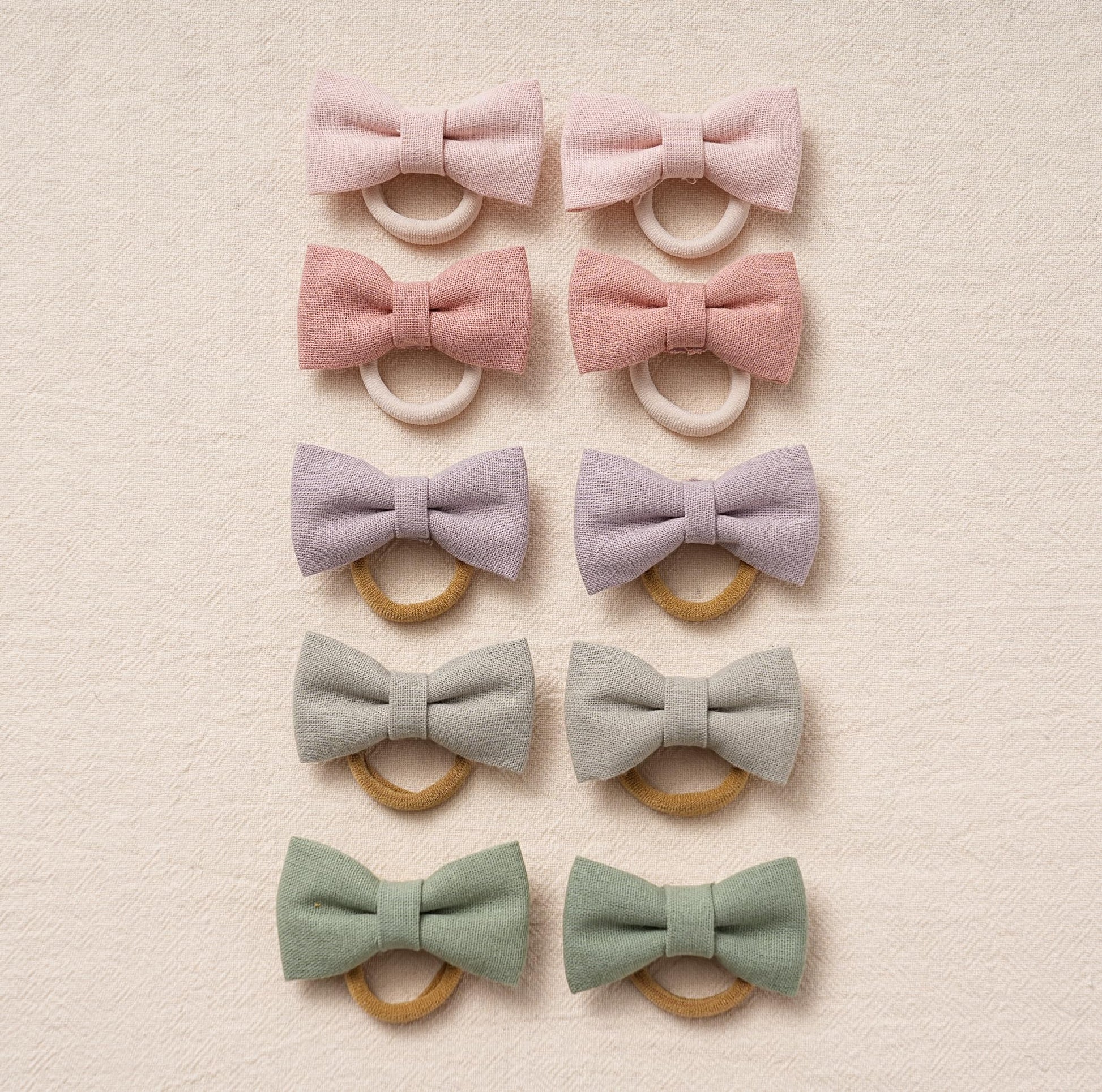 - Q: How many pieces are included in this set? A: This set includes 20 pieces of handmade hair ties with linen bows.