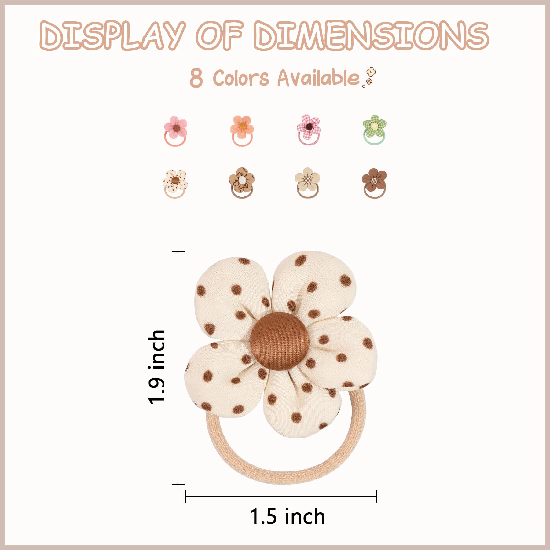 - Q: What is the size of the hair ties and bows? A: The small elastic bands are about 1.5 inches in diameter, while the bows range from 1.6 to 1.9 inches, and the flowers are about 1.5 inches in diameter.