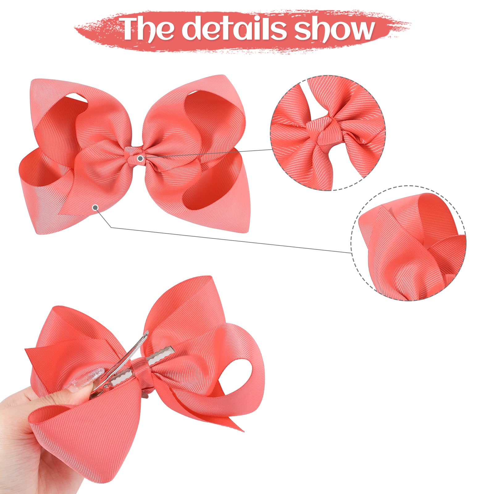 - Q: How are the hair bows attached? A: Each hair bow comes with an alligator clip that ensures a secure and comfortable fit.