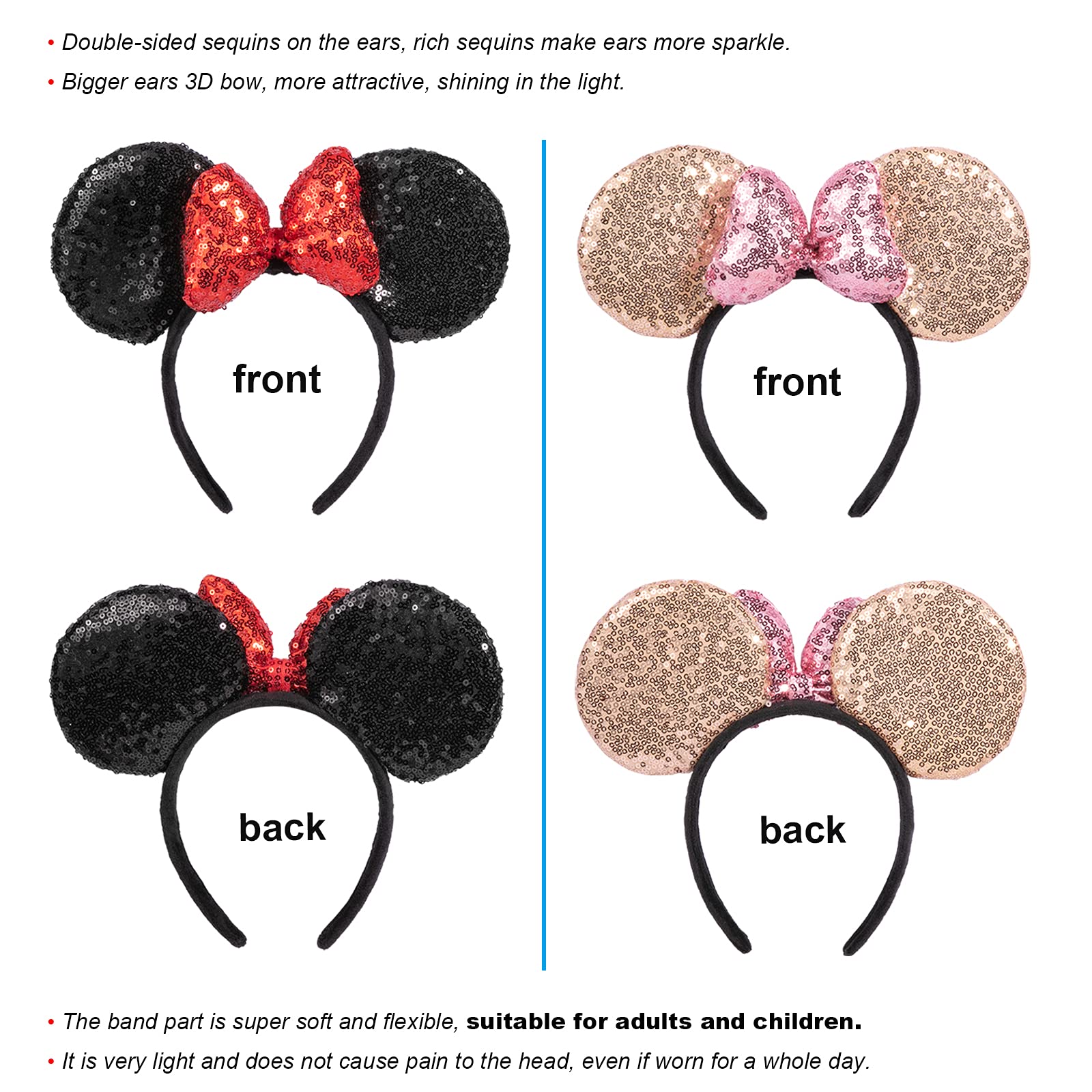 - Q: Can I use these headbands for parties or special occasions? A: Absolutely! They are perfect for birthday parties, Halloween, Christmas, Disneyland trips, and any Disney-themed events.