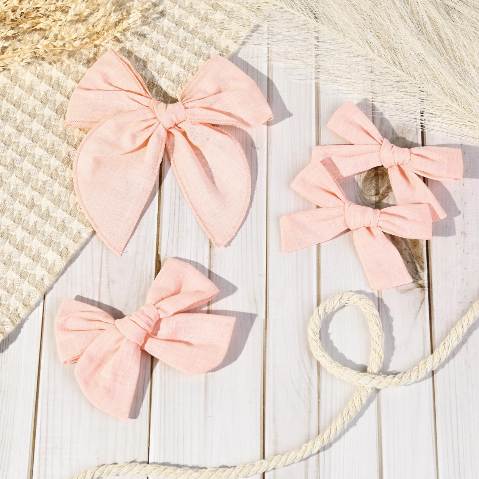 - Q: What colors are available for the DEEKA Hair Bows? A: The DEEKA Hair Bows set is available in a light pink color, offering a soft and stylish look for young girls.