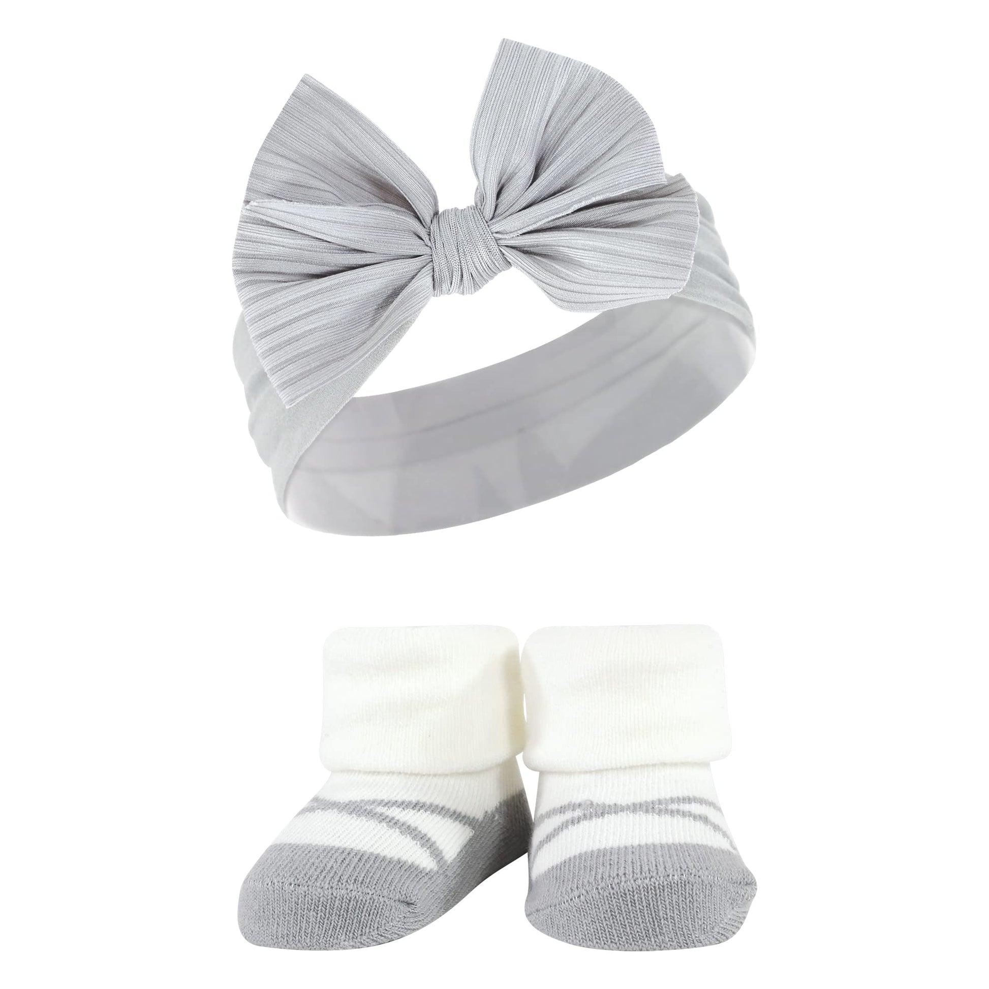 - Q: What is included in the Hudson Baby Baby Girls' Headband and Socks Giftset? A: The Hudson Baby Baby Girls' Headband and Socks Giftset includes coordinating headbands and socks designed to keep your baby looking fashionable from head to toe.