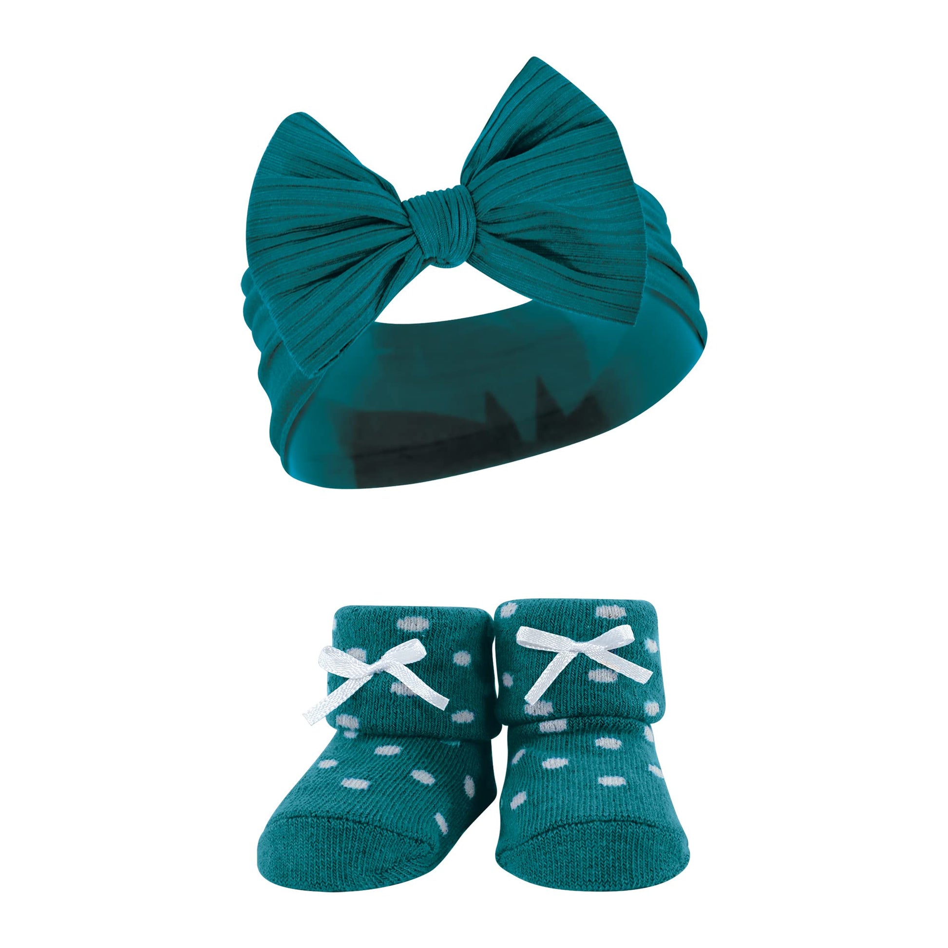 - Q: What colors are available for the Hudson Baby Infant Girl Headband and Socks Giftset? A: This particular set features a teal and pink color combination, which is both vibrant and appealing for infants.