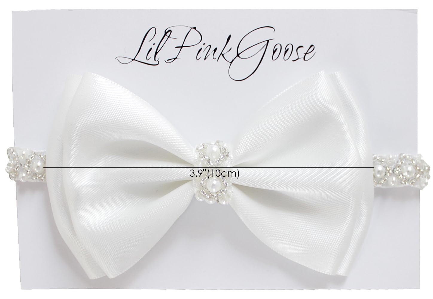 - Q: Does the headband have any special features? A: The headband features a satin bow and a pearl rhinestone band, adding an elegant touch to your baby's outfit.