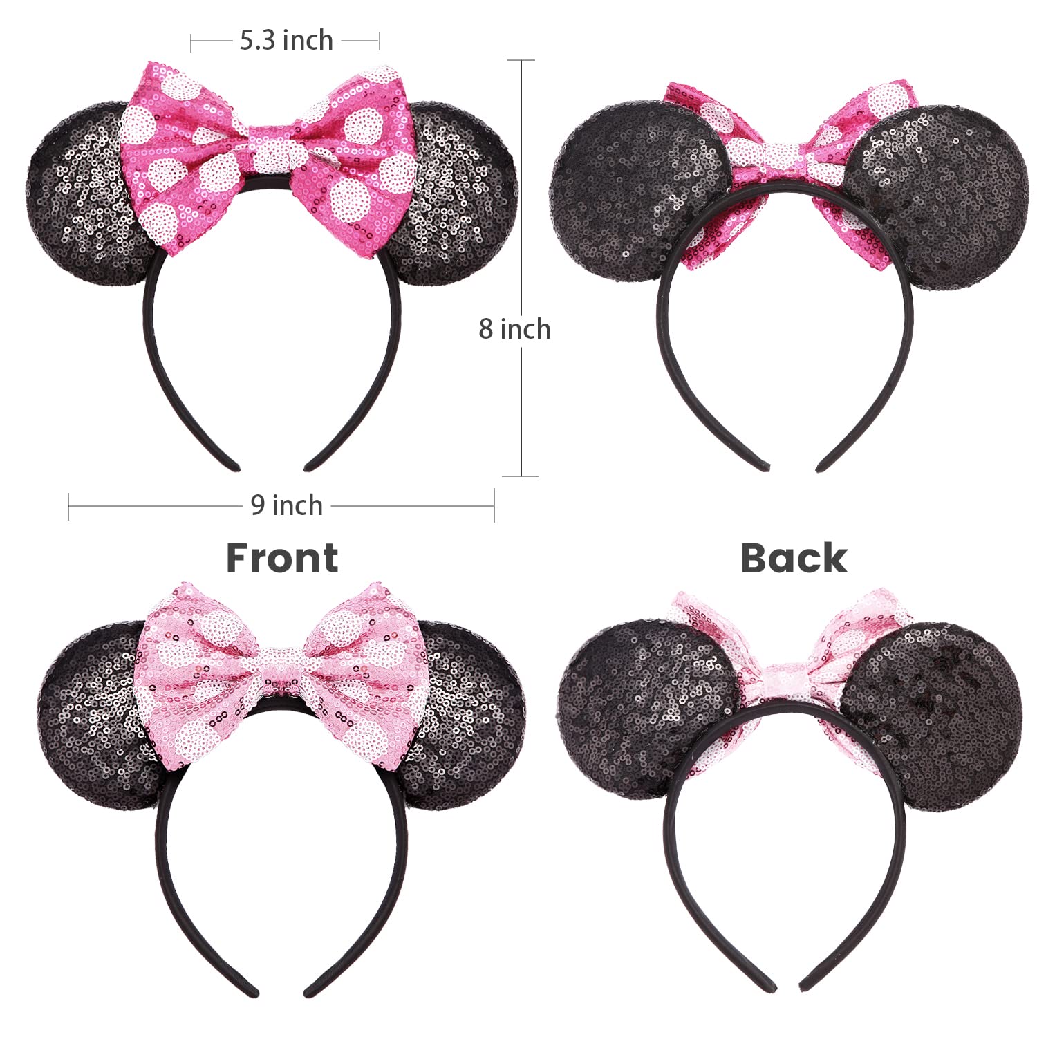 - Q: What is included in the package? A: The package includes two mouse ear bow headbands, each featuring a different style.
