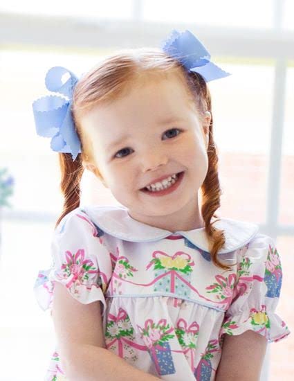 - Q: How do I care for the grosgrain hair bow? A: To care for the hair bow, avoid washing it in water. Instead, spot clean with a damp cloth if necessary.