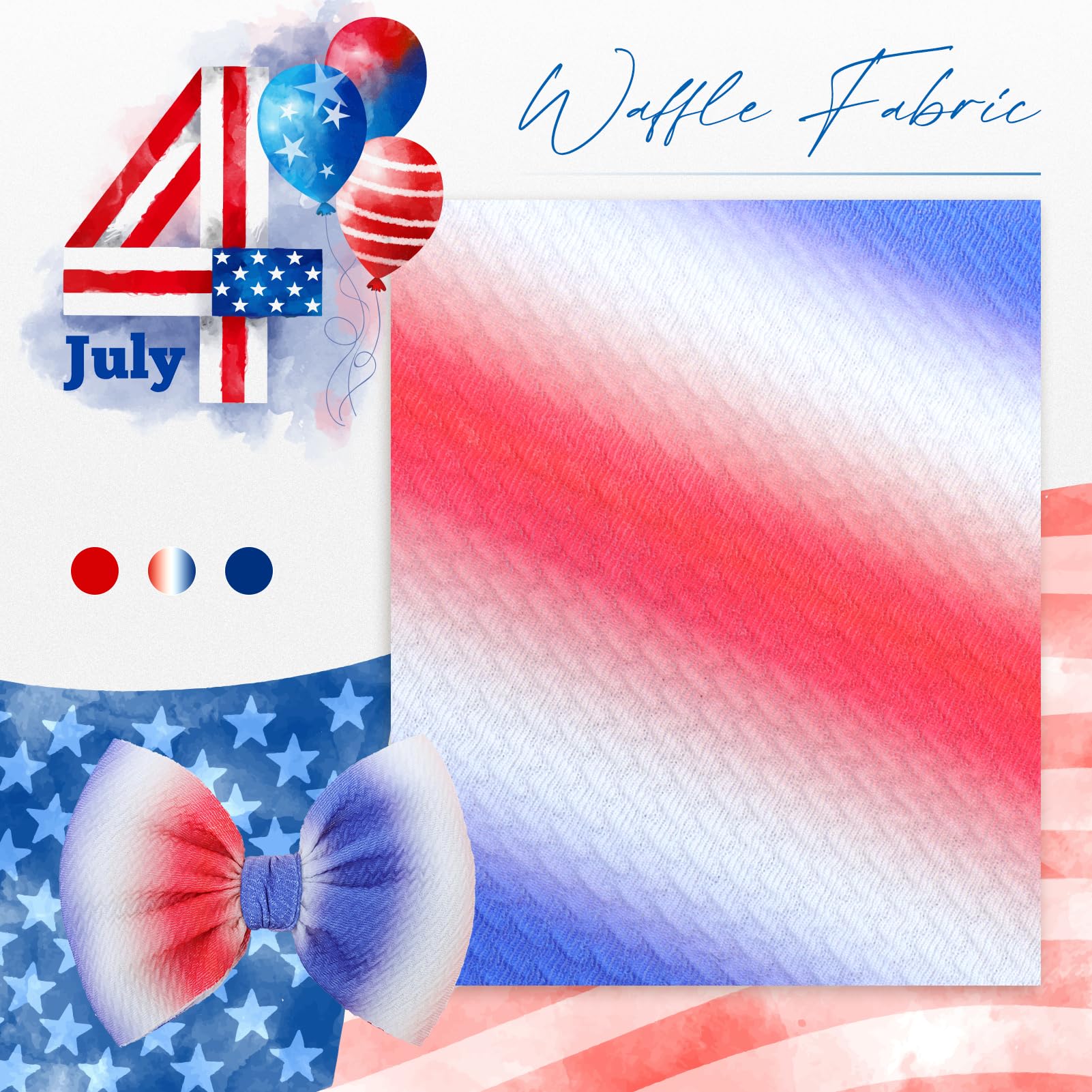 - Q: How many headbands are included in one purchase? A: Each purchase includes three handmade headbands, each with different styles featuring the 4th of July theme.