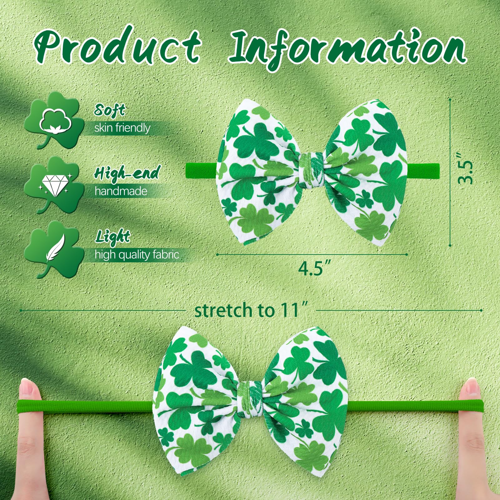 - Q: How many headbands are included in the set? A: The set includes three different shamrock bow headbands, each handmade with love.