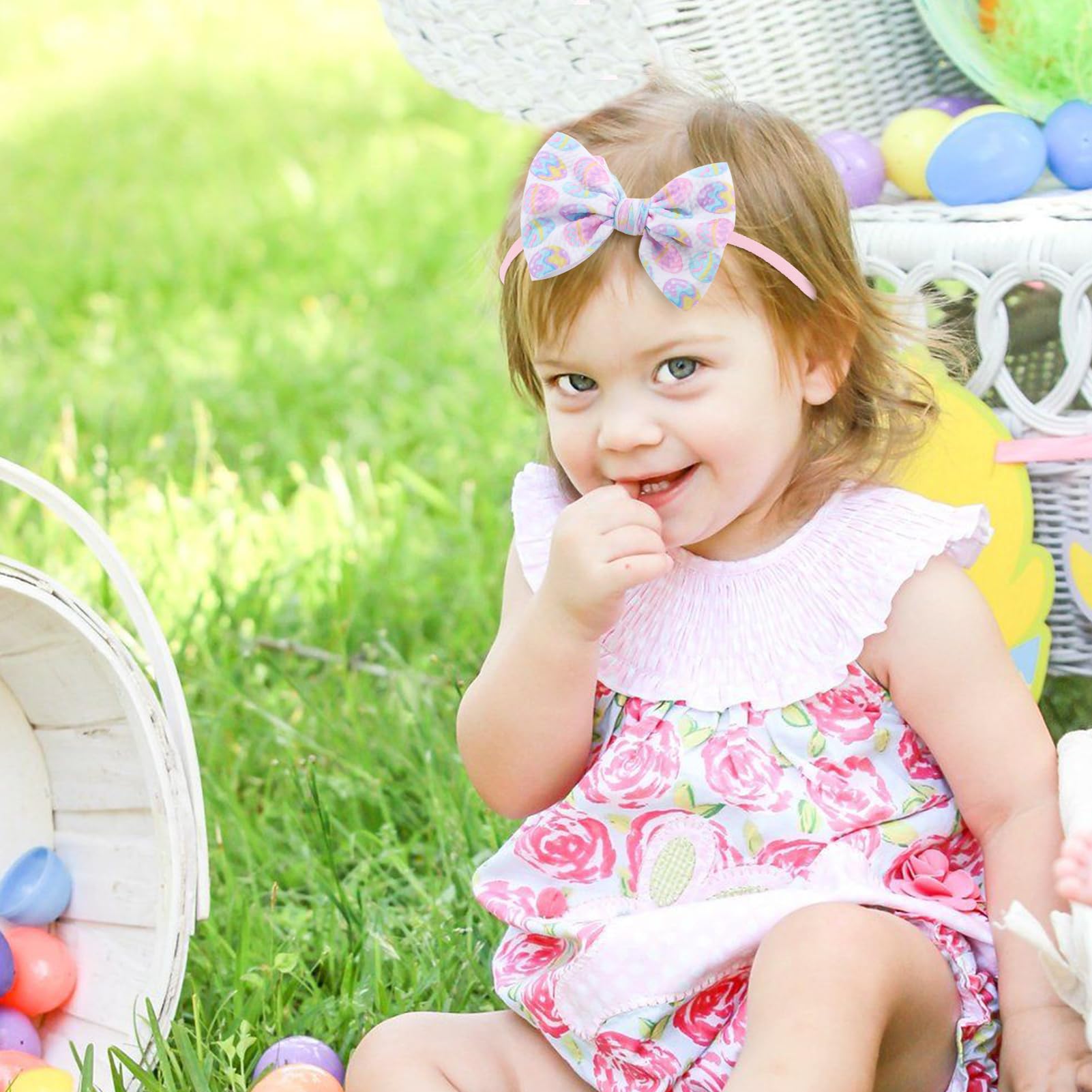 - Q: What designs do the Easter headbands feature? A: The headbands feature classic Easter-themed prints, including Easter eggs and rabbits.