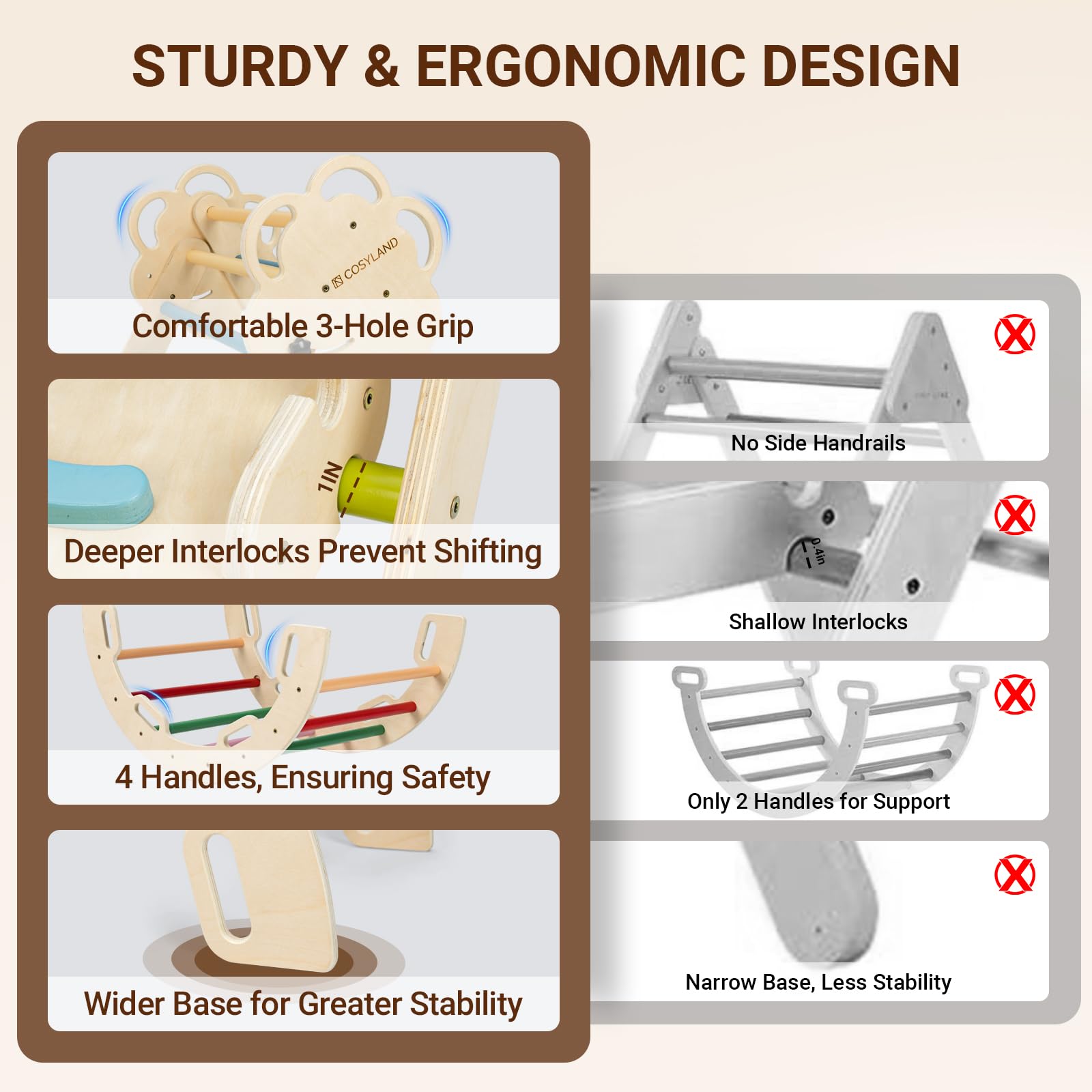 Cosyland Pikler Triangle Set - 8 In 1 Large Montessori Climbing Toys For Indoor - Wooden Foldable Jungle Gym For Toddler & Baby,