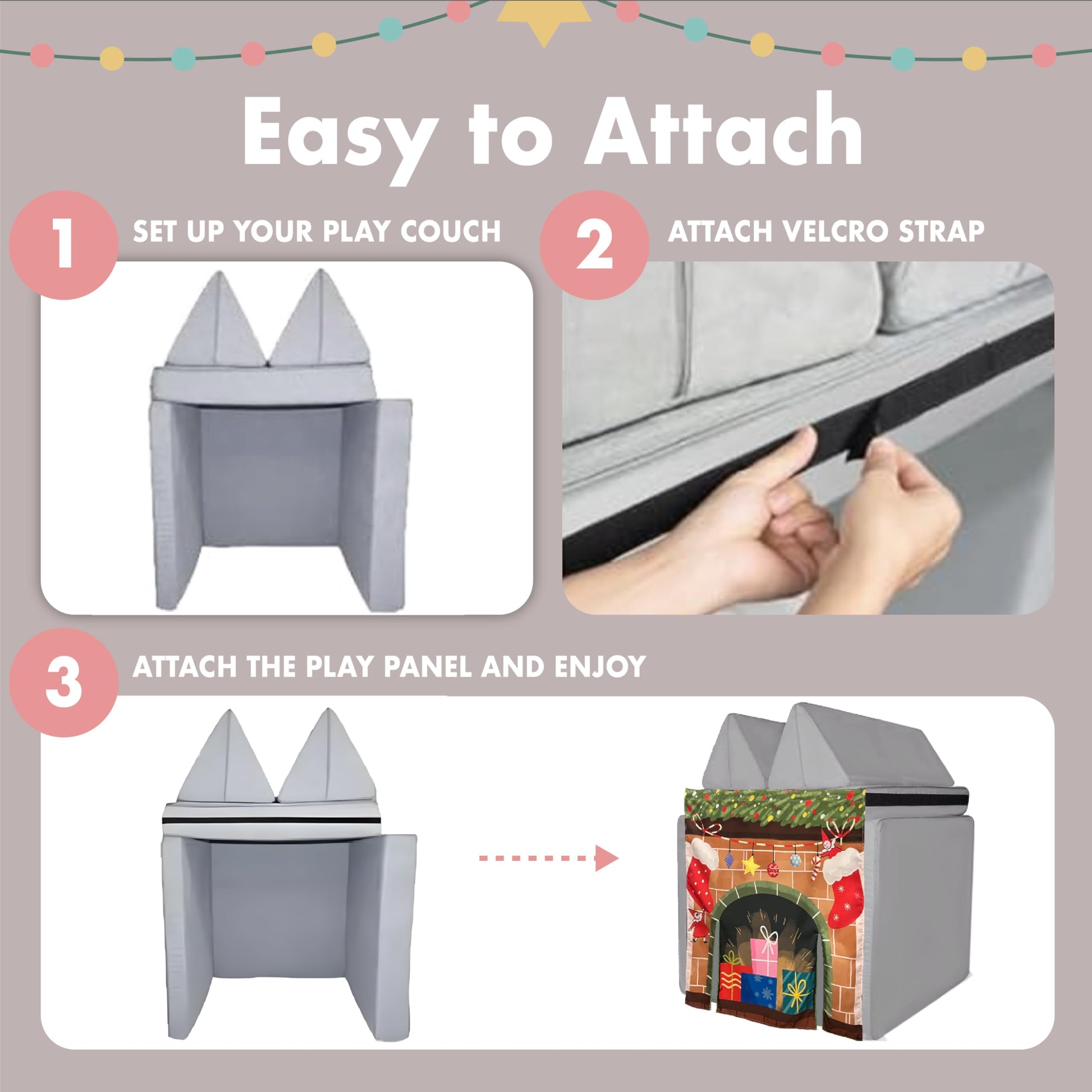 - Q: What is included with the SeeMees Play Panel? A: The package includes one Christmas-themed play panel featuring a festive fireplace design and a twelve-foot Velcro strap for easy attachment.
