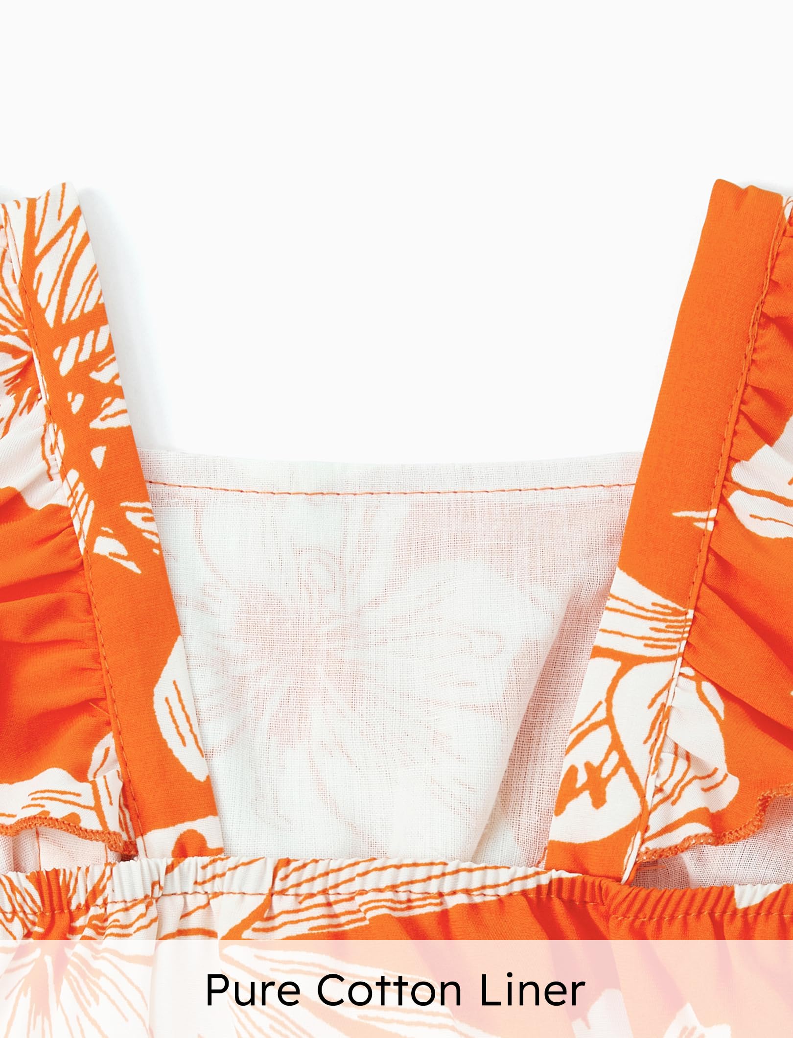 Patpat Family Hawaiian Matching Outfits With Baby Mommy And Me Beach Dresses Tropical Floral Palm Leaf Print Halter Neck Hawaiia