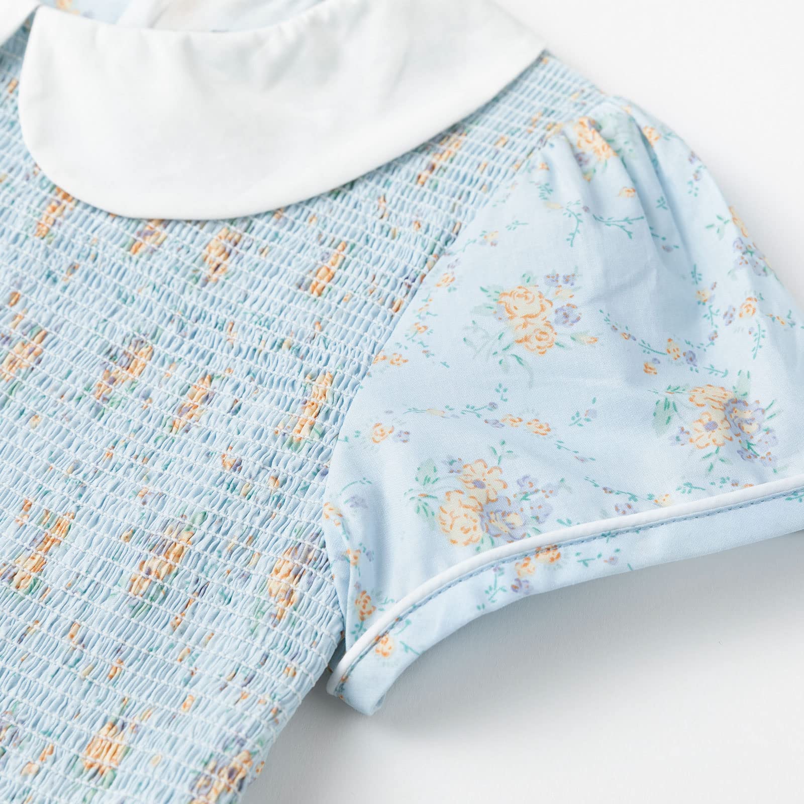 - Q: Does the dress have any special design features? A: Yes, it features short ruffled sleeves, smocking detail on the chest, and hand-sewn gradient color embroidery.