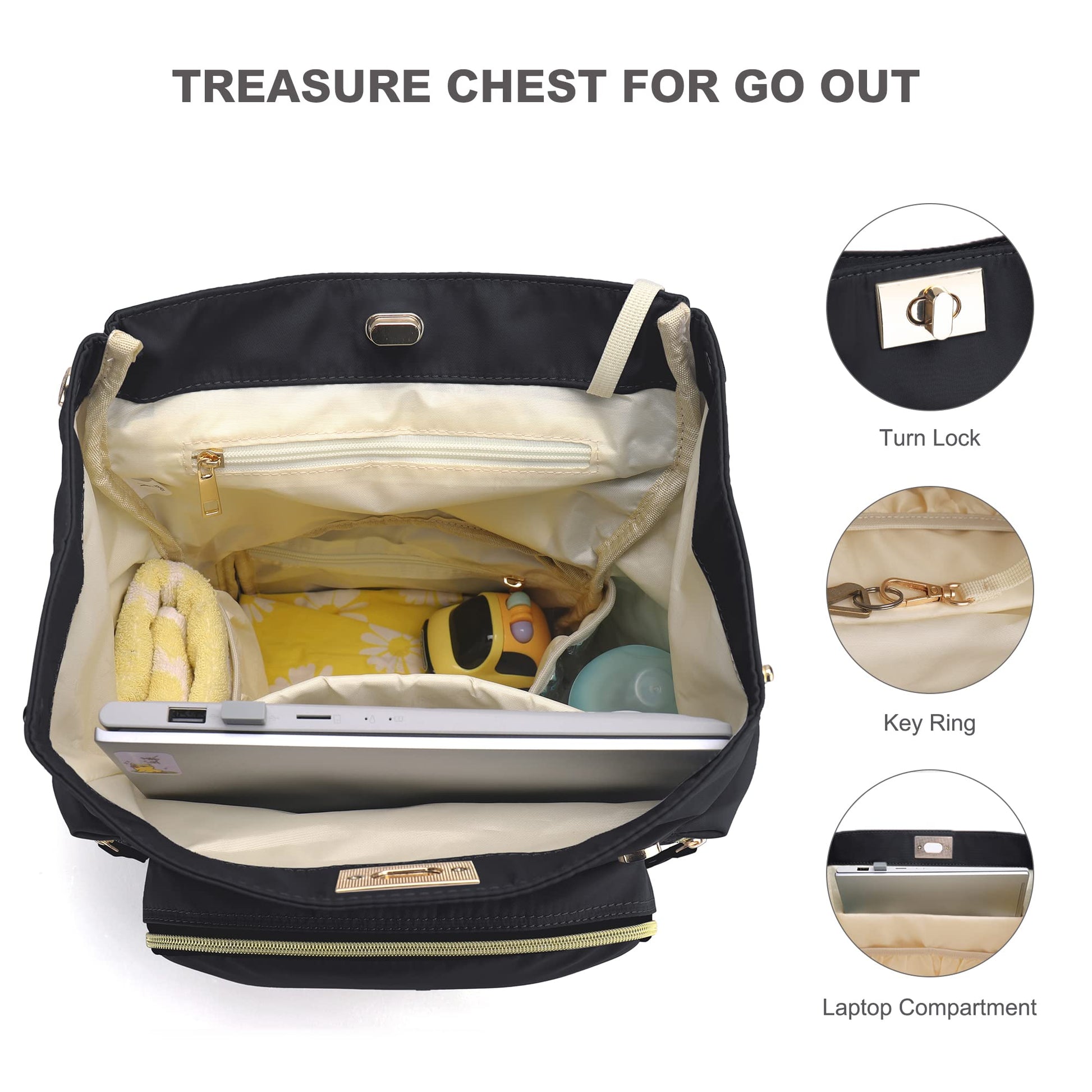 - Q: What is the closing mechanism of the VS VOGSHOW Diaper Bag Backpack? A: The bag closes with two magnetic buttons instead of zippers, making it easy to open with one hand, even when holding a baby.