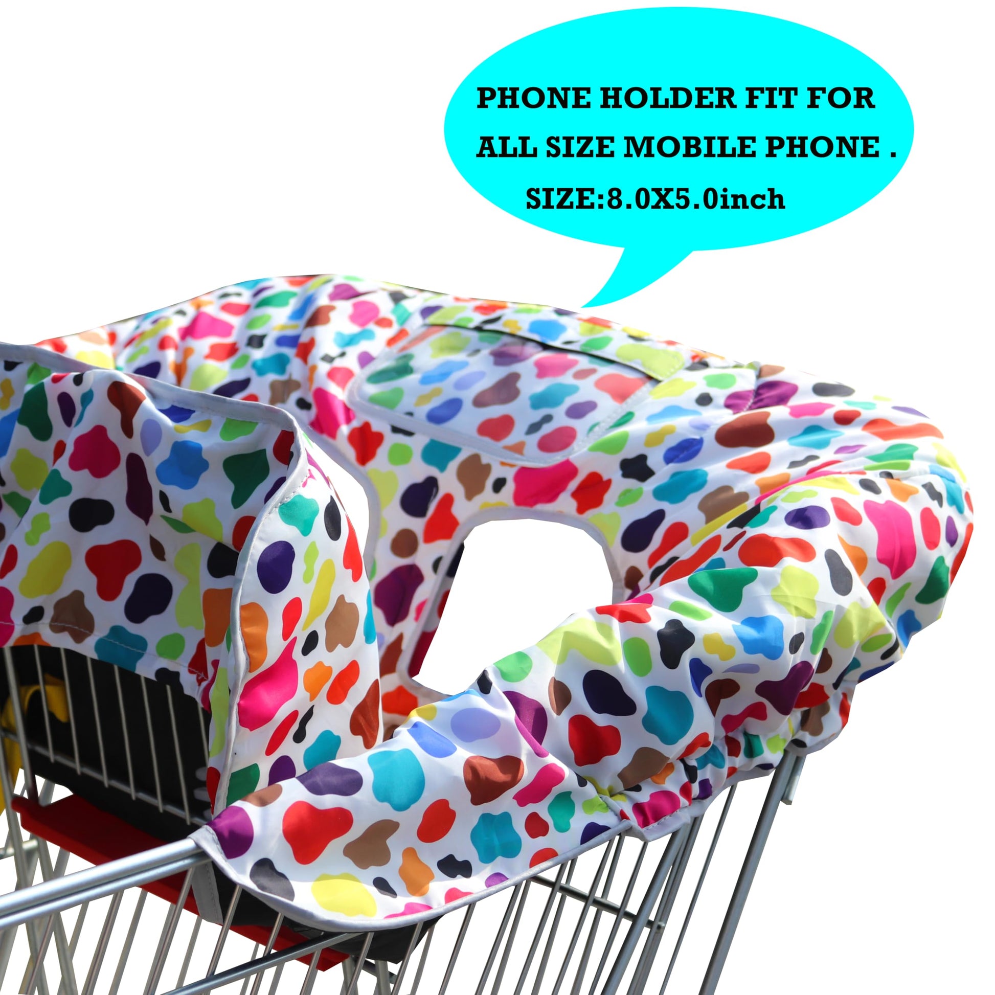 - Q: Are there any additional features in this shopping cart cover? A: Yes, the cover includes features like a snack pocket, phone pocket for smartphones, and two toy loops for hanging toys.