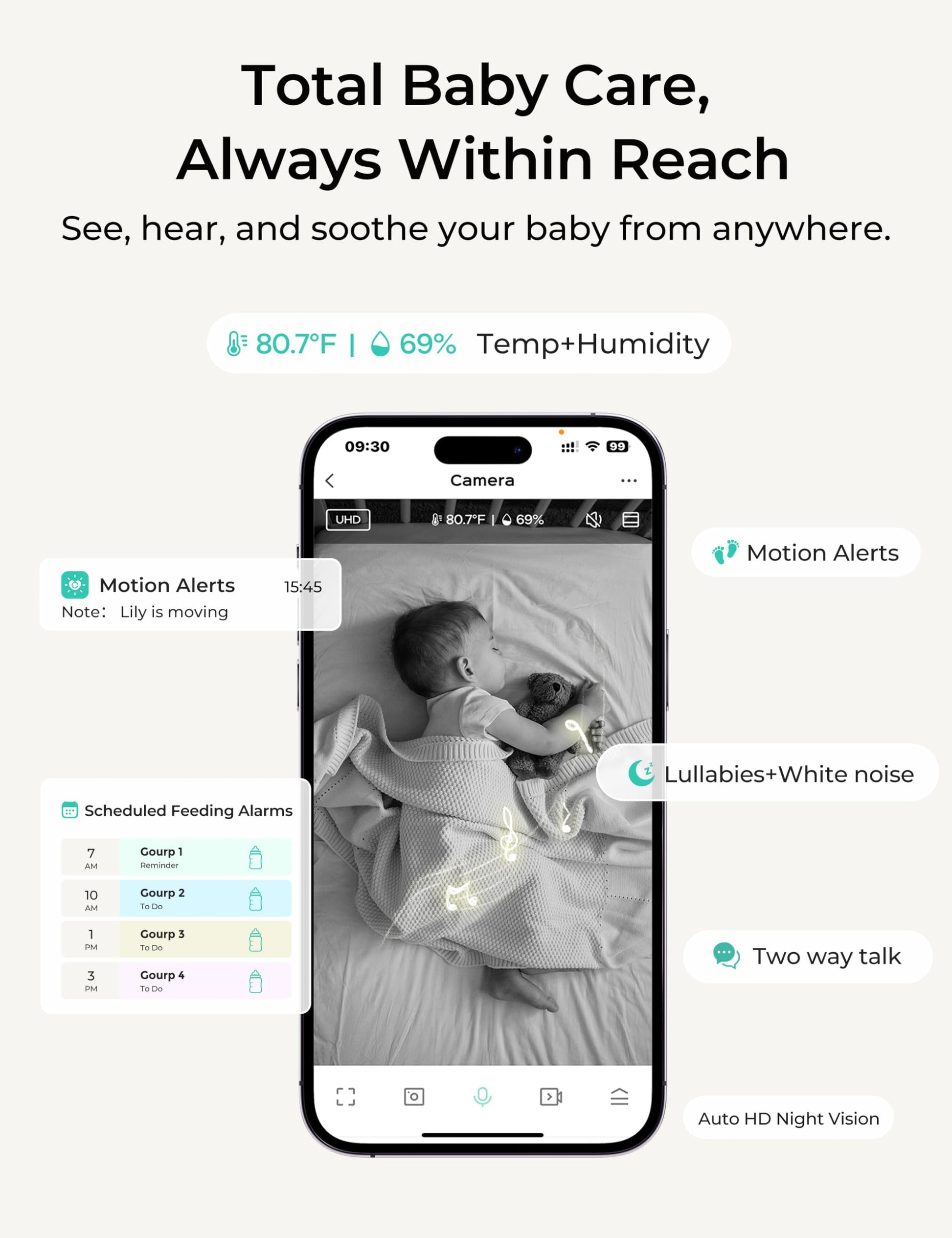 - Q: Can I control the baby monitor through a mobile app? A: Yes, the baby monitor allows for app control, enabling you to monitor your baby through your mobile device.