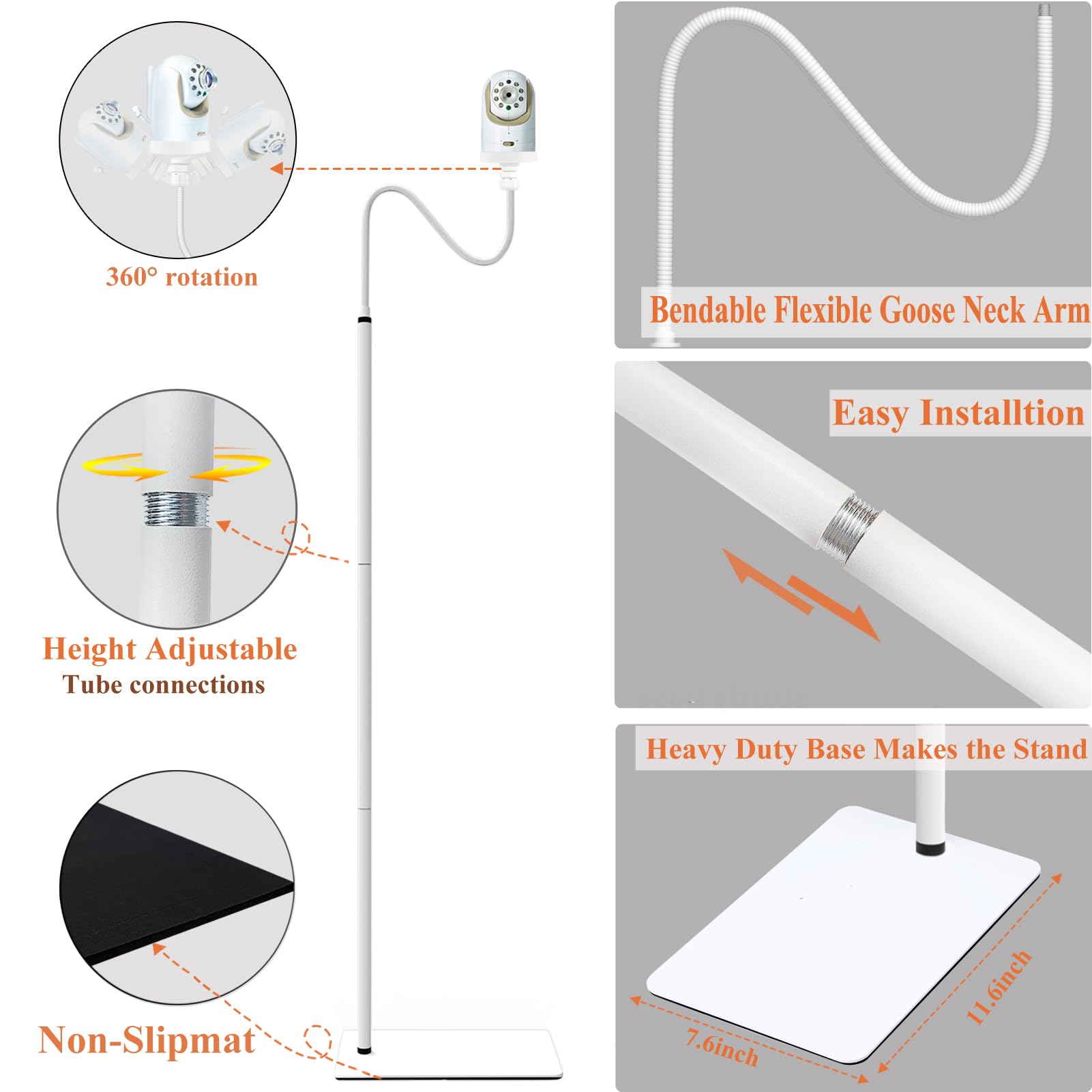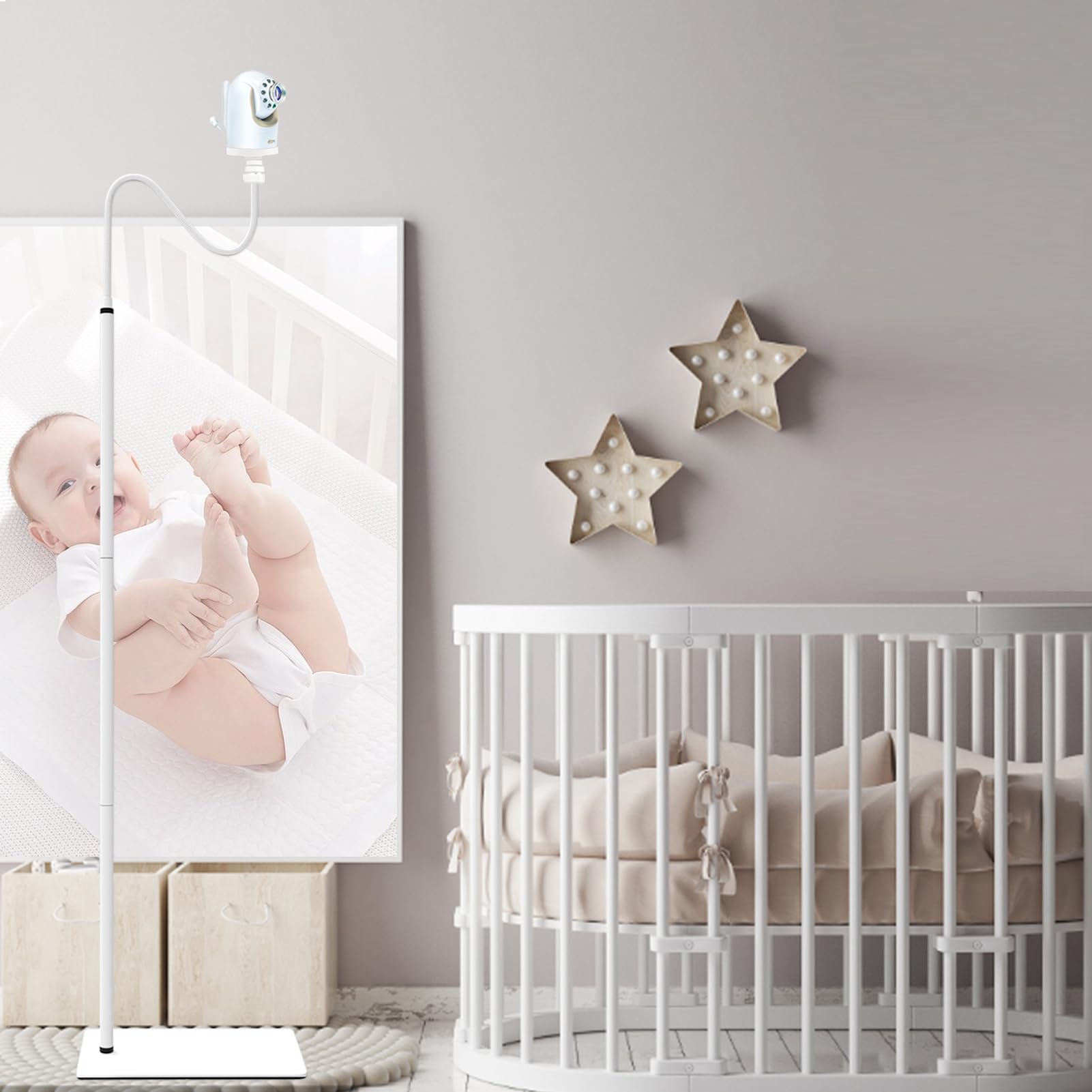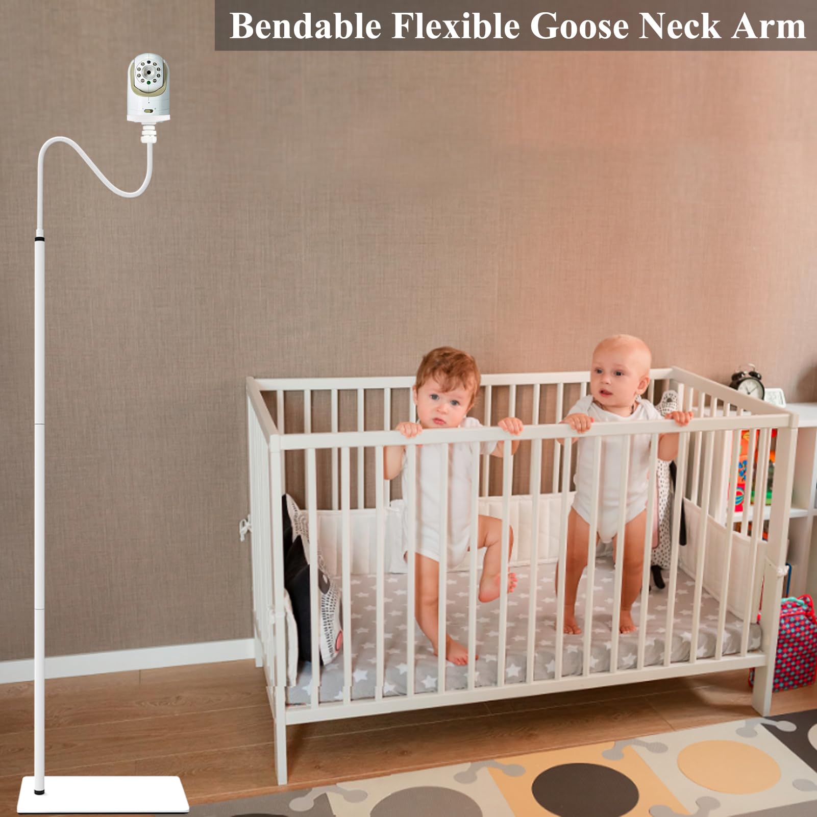 - Q: Is the baby monitor included with the stand? A: No, the JAMYOK Floor Stand does not include any cameras; it is a holder for compatible baby monitors.