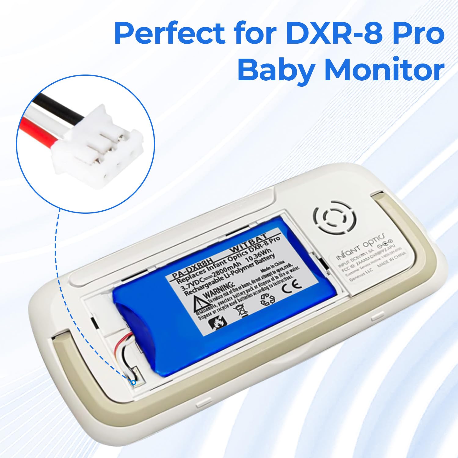 - Q: Can this battery be used as a second battery for the DXR-8 Pro? A: Yes, this battery is ideal as a second battery for the Infant Optics DXR-8 Pro video monitor.