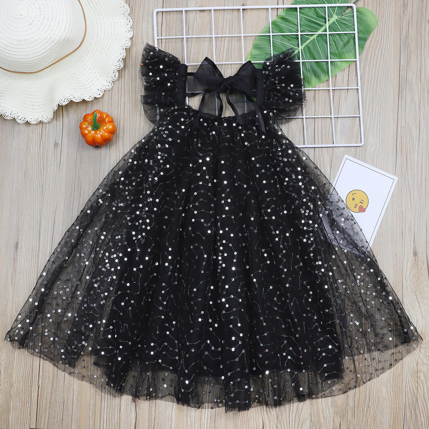 - Q: What style is this dress? A: The dress is designed as a sleeveless A-line tulle tutu dress with sequins, giving it a shiny and classy appearance.