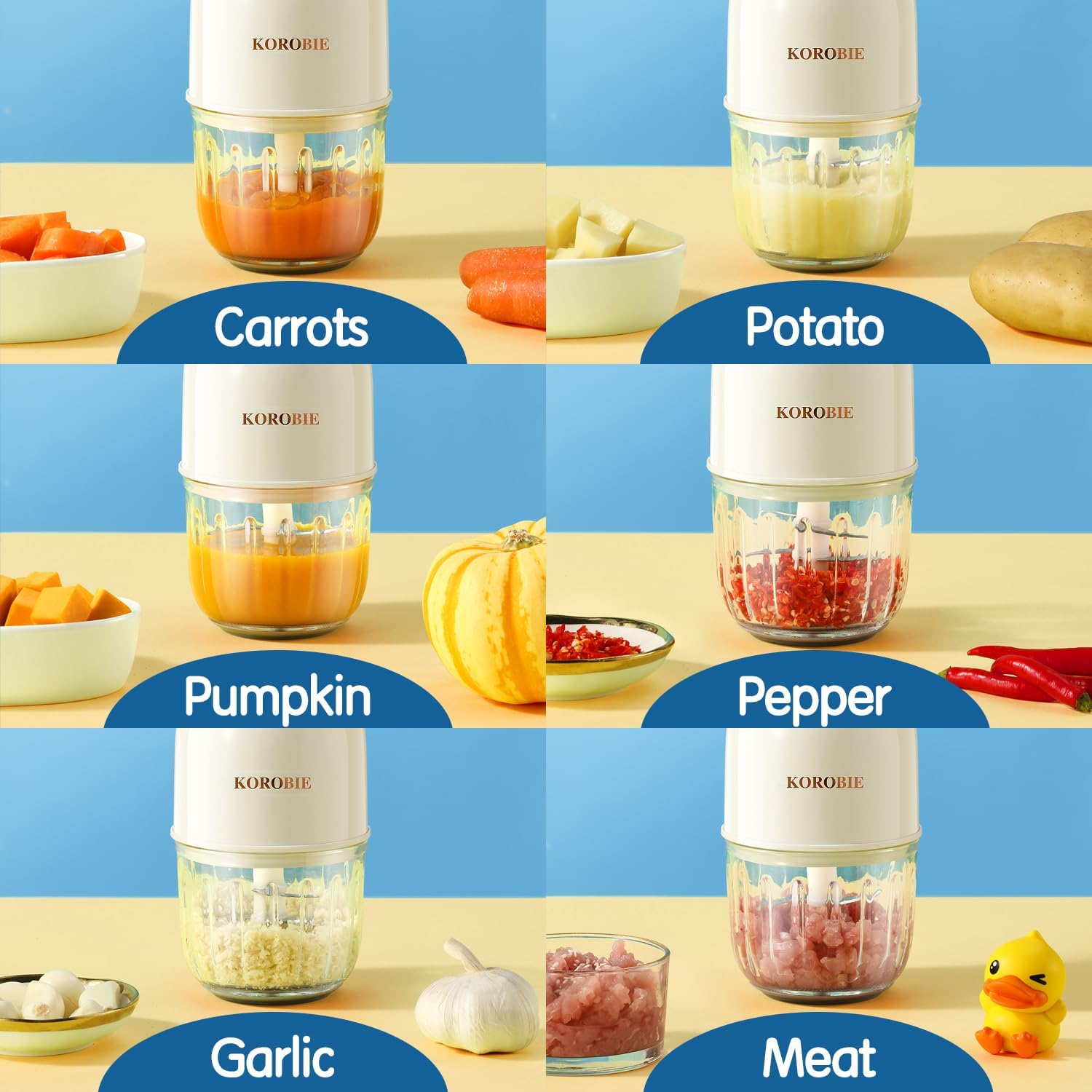 - Q: What types of food can I prepare with the KOROBIE Baby Food Maker? A: You can prepare a variety of foods including fruits, vegetables, meats, and even whole meals. The baby food maker is versatile enough to create purees and more textured blends as your baby grows.