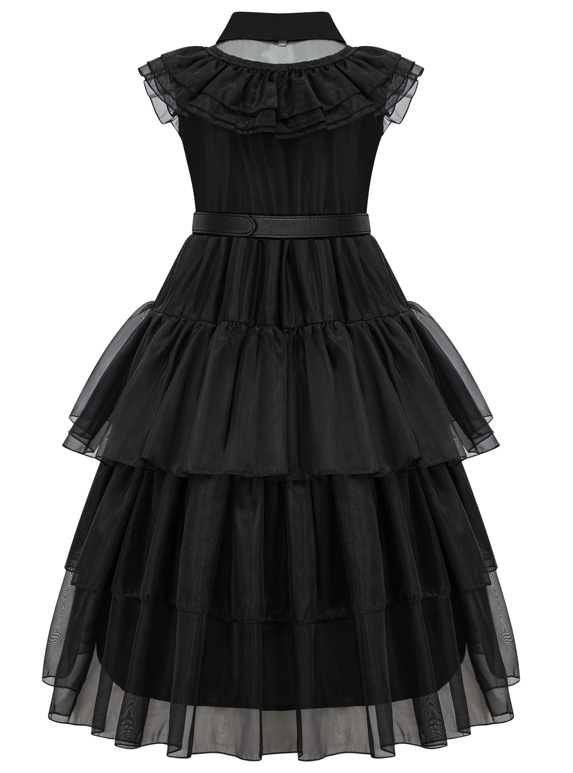 - Q: What is included in the Halloween costume set? A: The Halloween costume set includes a girls black dress, a soft wig, a delicate belt, and cosplay stockings.