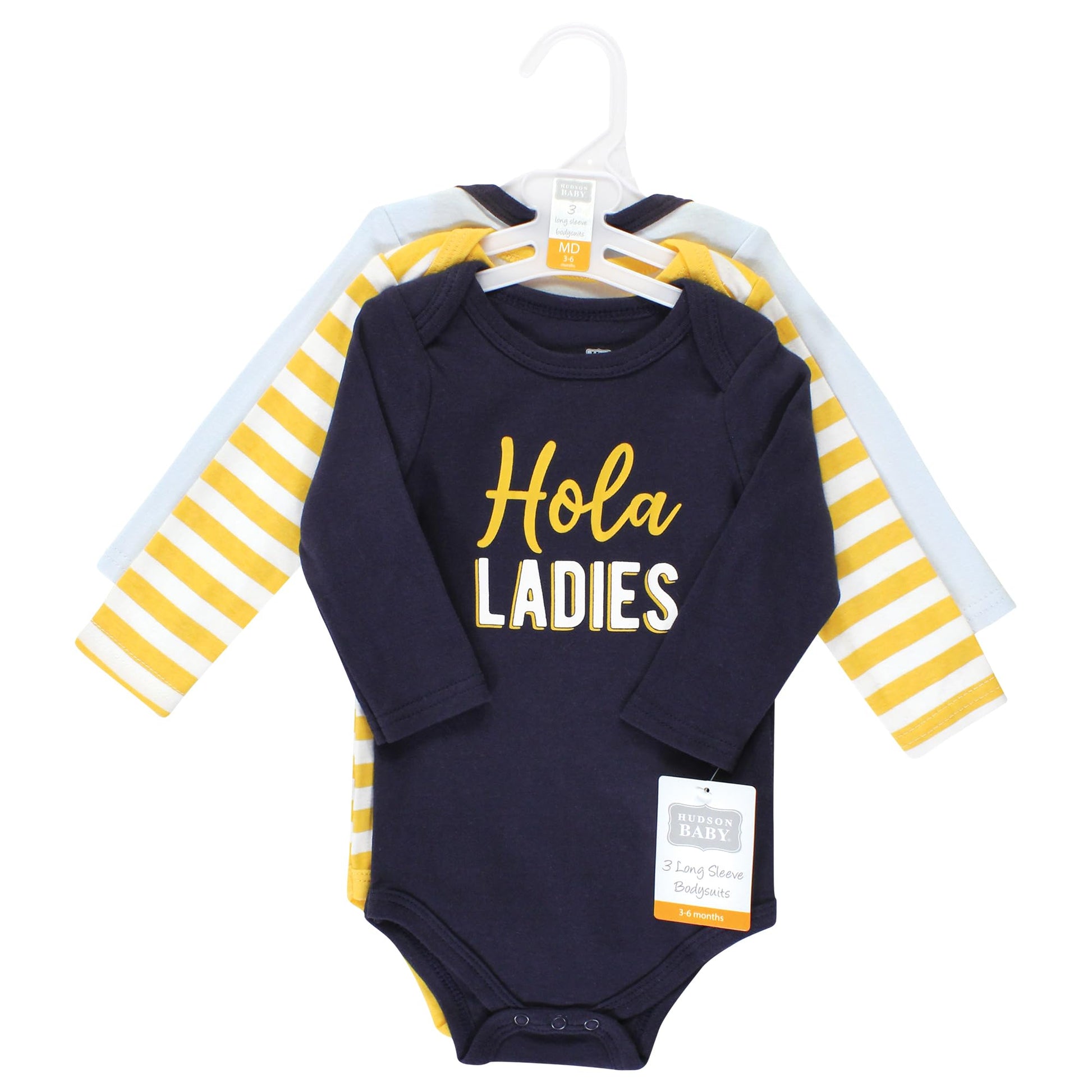 - Q: How many bodysuits are included in the pack? A: The pack includes three coordinating long-sleeve bodysuits.
