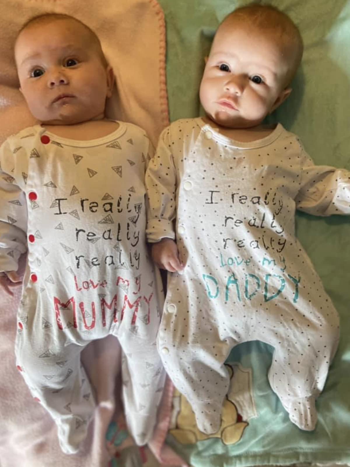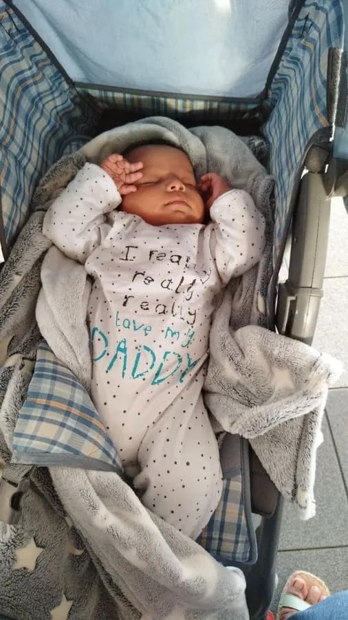 - Q: Does the romper have any special design features? A: Yes, the romper features a cute print stating 'I Really Love My Daddy and Mummy', adding a charming touch to its design.