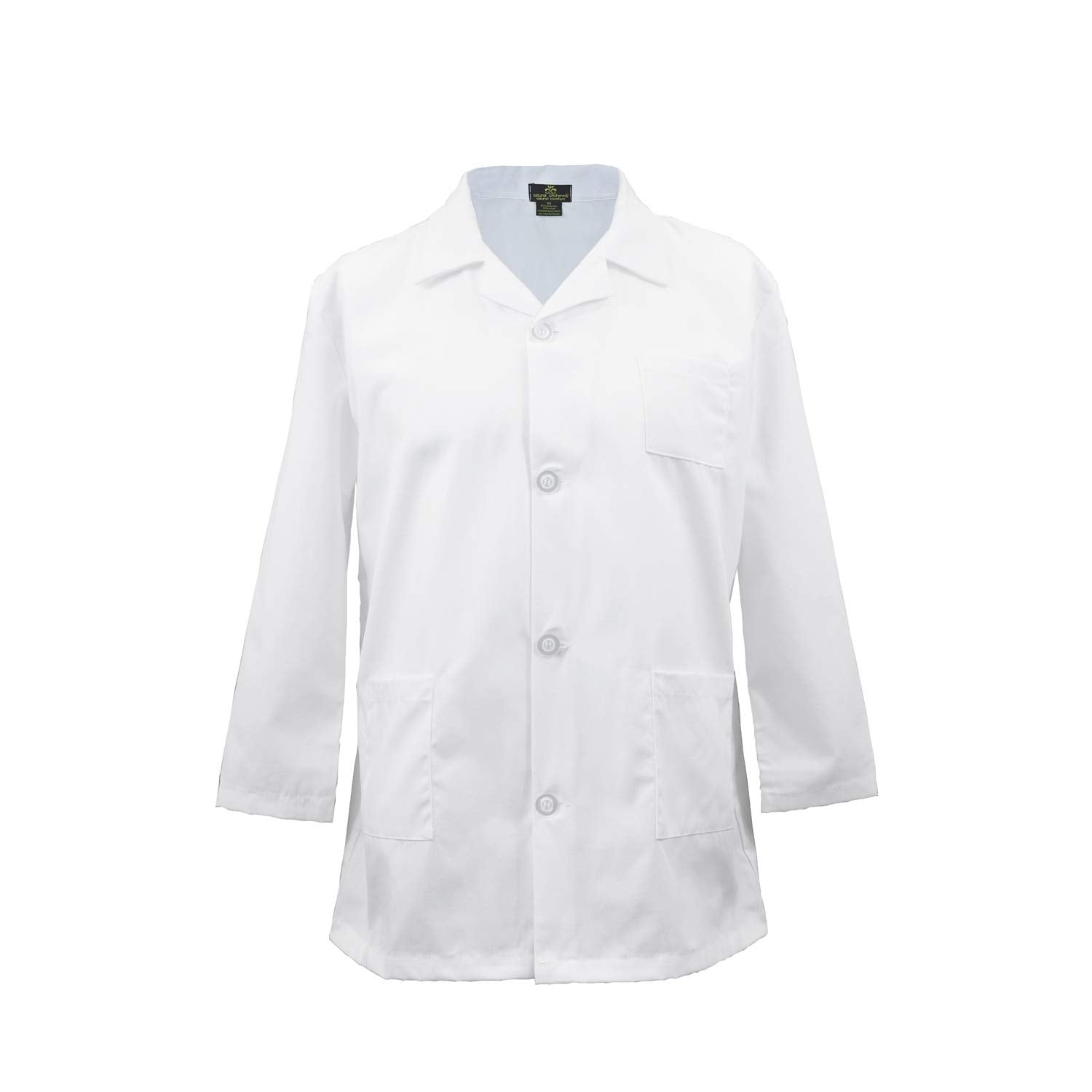 - Q: What features does the lab coat have? A: The lab coat features front button closures, one chest pocket, and two lower pockets for added functionality.