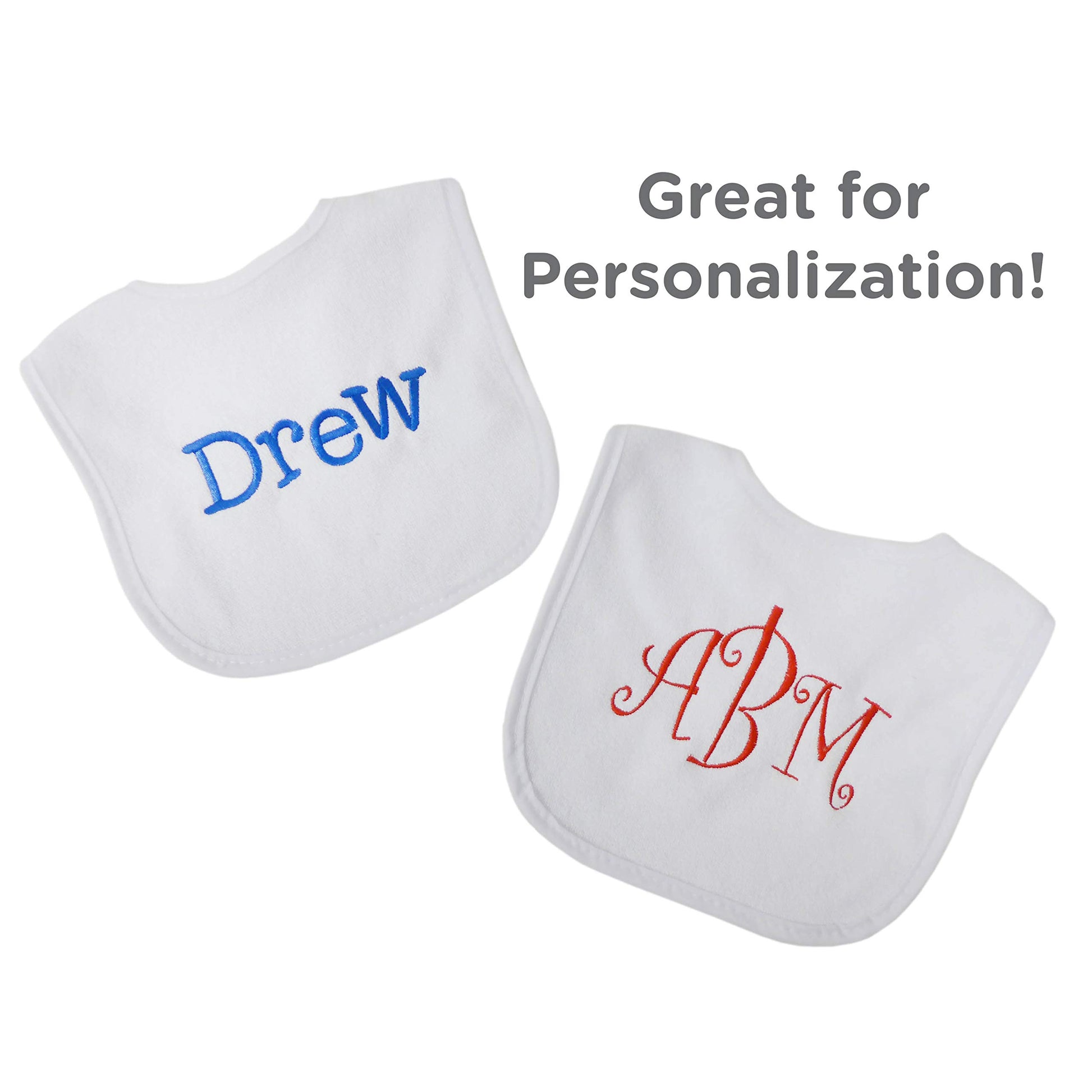 - Q: Can these bibs be personalized? A: Yes, the solid white design is ideal for crafting and allows for customization, such as adding embroidery.