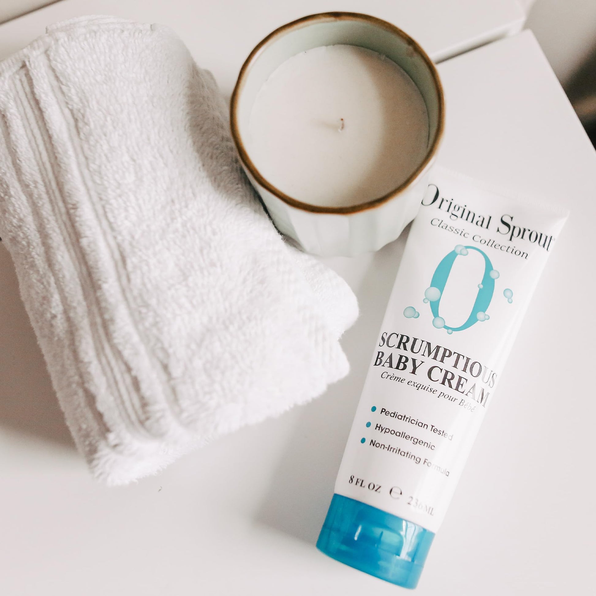 - Q: What is Original Sprout Scrumptious Baby Cream used for? A: Original Sprout Scrumptious Baby Cream is a gentle moisturizing cream designed for dry, sensitive skin and diaper rash. It provides nourishment and protection to delicate skin.