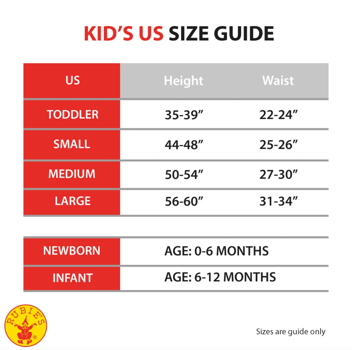- Q: How should I choose the right size for my child? A: Costumes are sized differently than regular apparel. It's best to use the Rubie's Child Size Chart rather than choosing based on your child's age or clothing size.