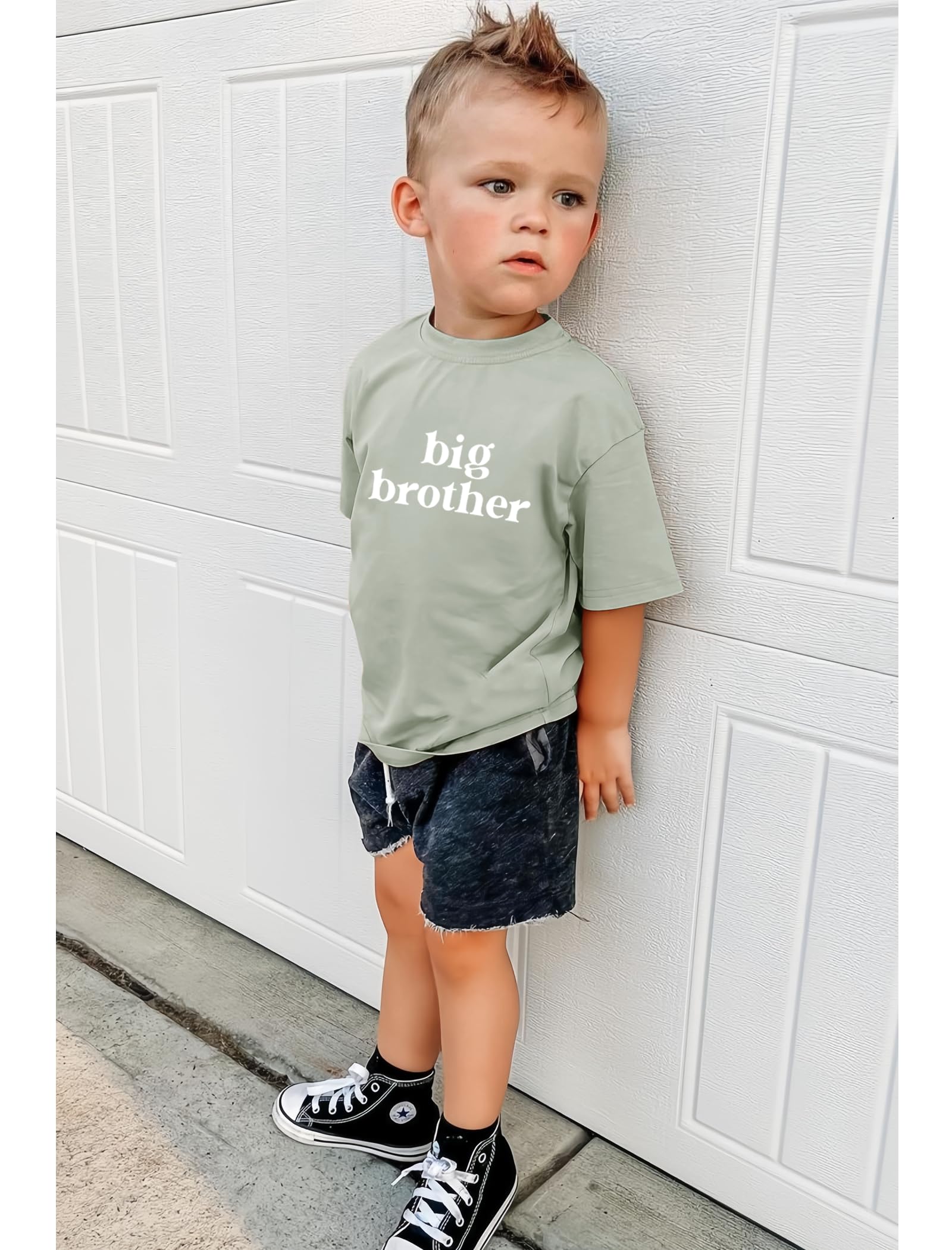 - Q: What is the design of the shirt? A: The shirt features a classic round neckline, short sleeves, and a loose fit with bold 'Big Brother' lettering printed on it.