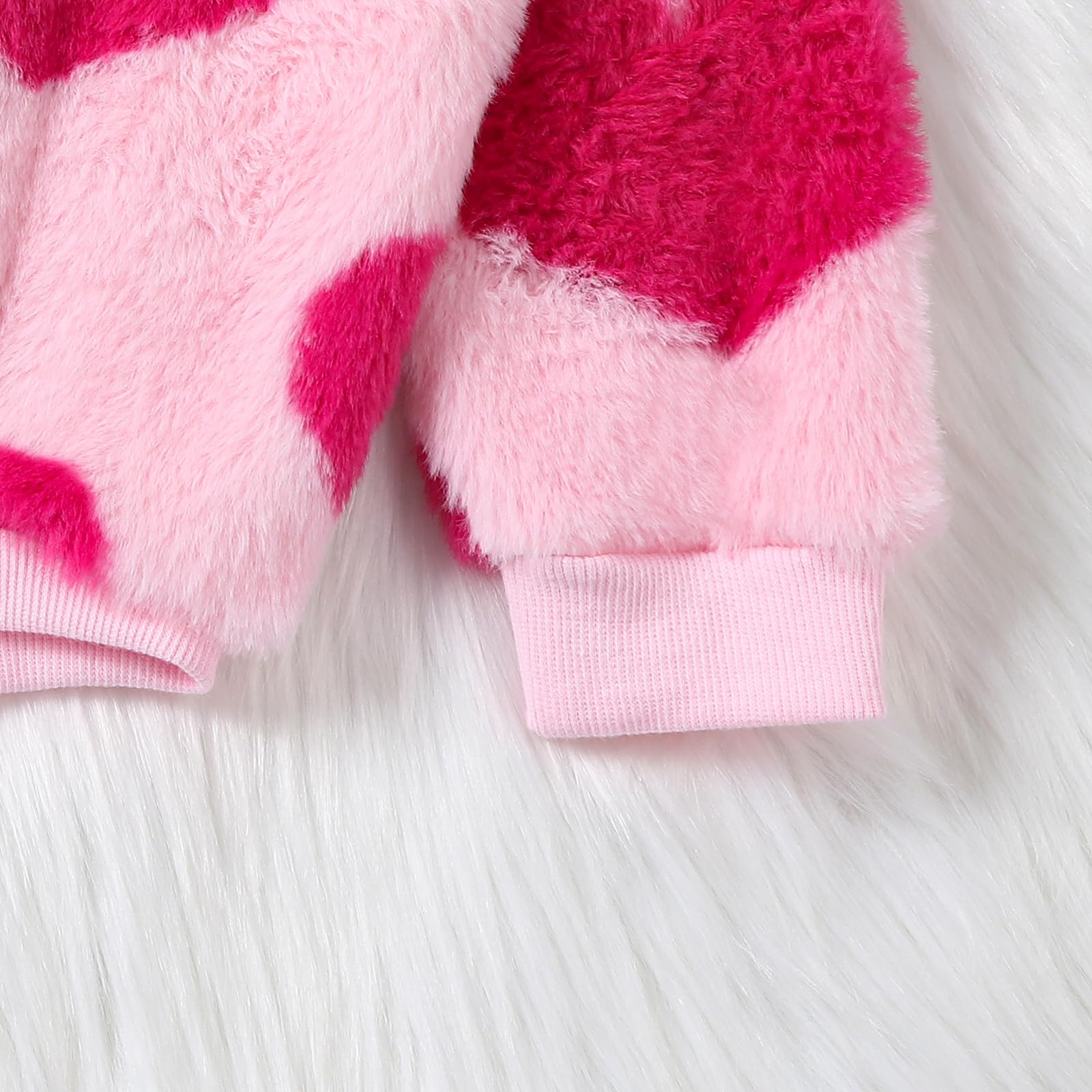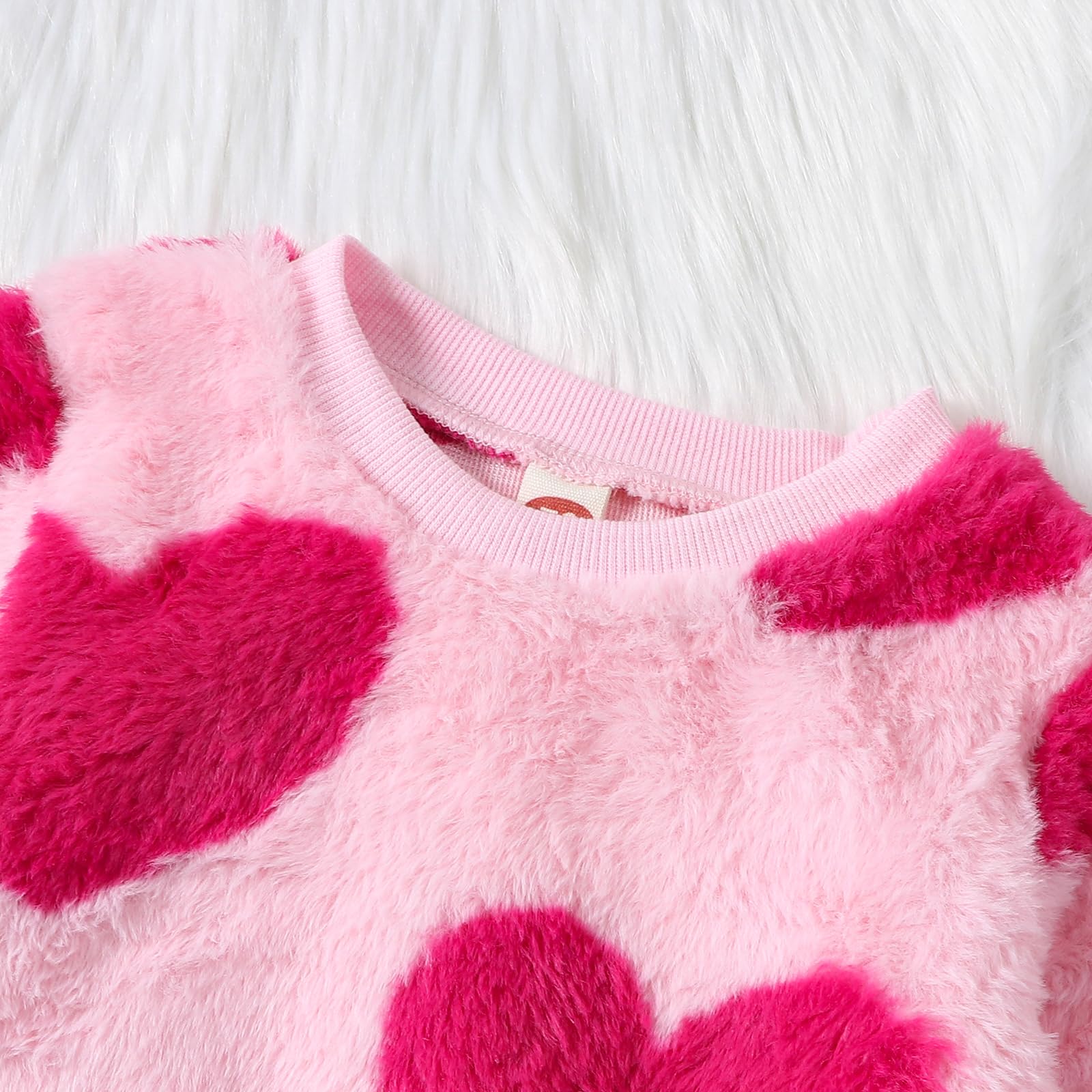 - Q: Does this outfit feature any special designs? A: Yes, the outfit features a heart print design with embroidered patches that include phrases like 'LOVE YOU', 'BE MINE', and 'HUG ME', adding a festive touch for Valentine's Day.
