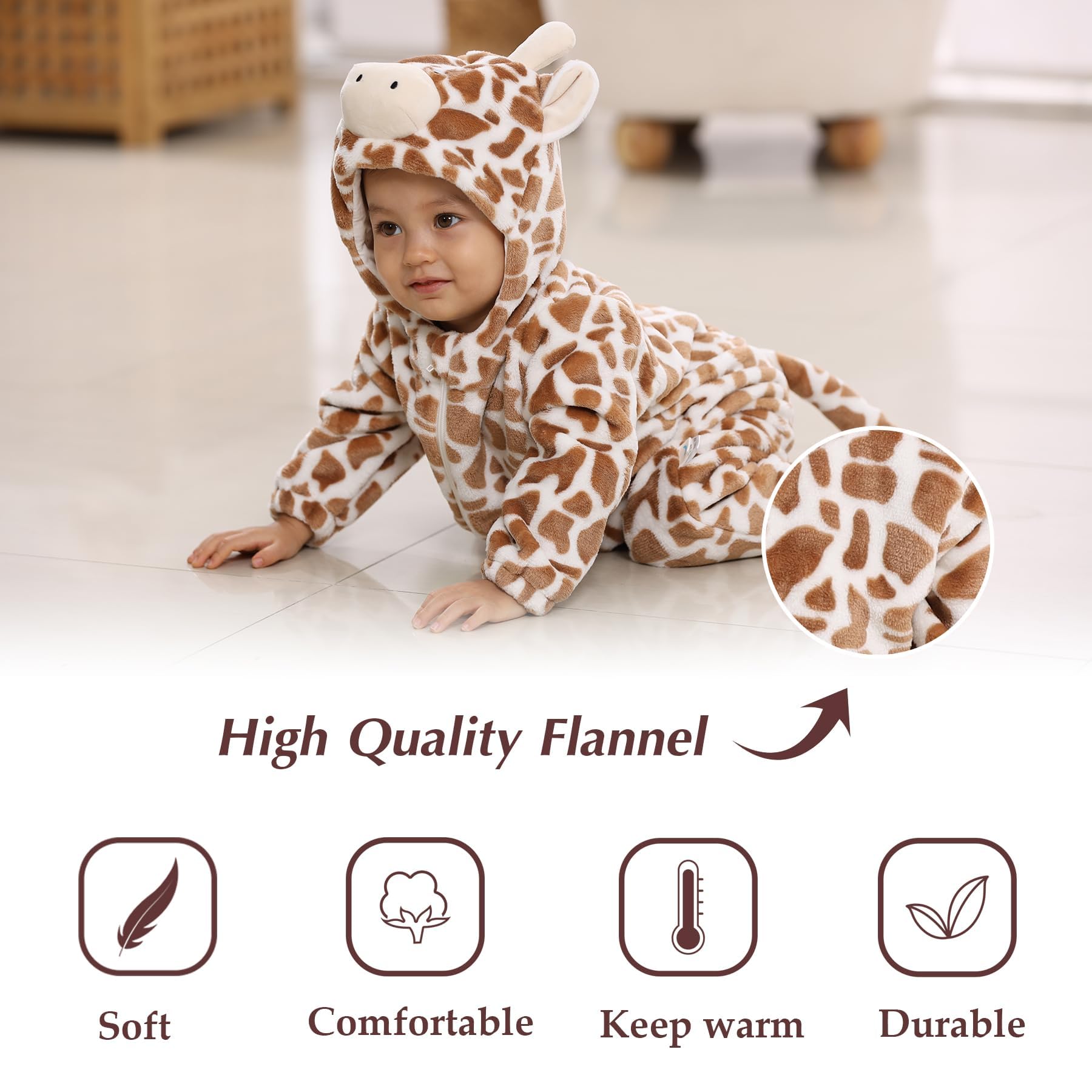 - Q: What materials is the costume made of? A: The Halloween costume is made from high-quality thick fleece and polyester, ensuring it is soft, comfortable, and warm for your baby to wear.