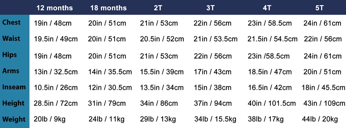 - Q: How do I choose the right size for my child? A: To choose the right size, refer to the provided sizing chart which represents the measurements of a child of the specified age. It is recommended to size by weight for the best fit given the loose design.