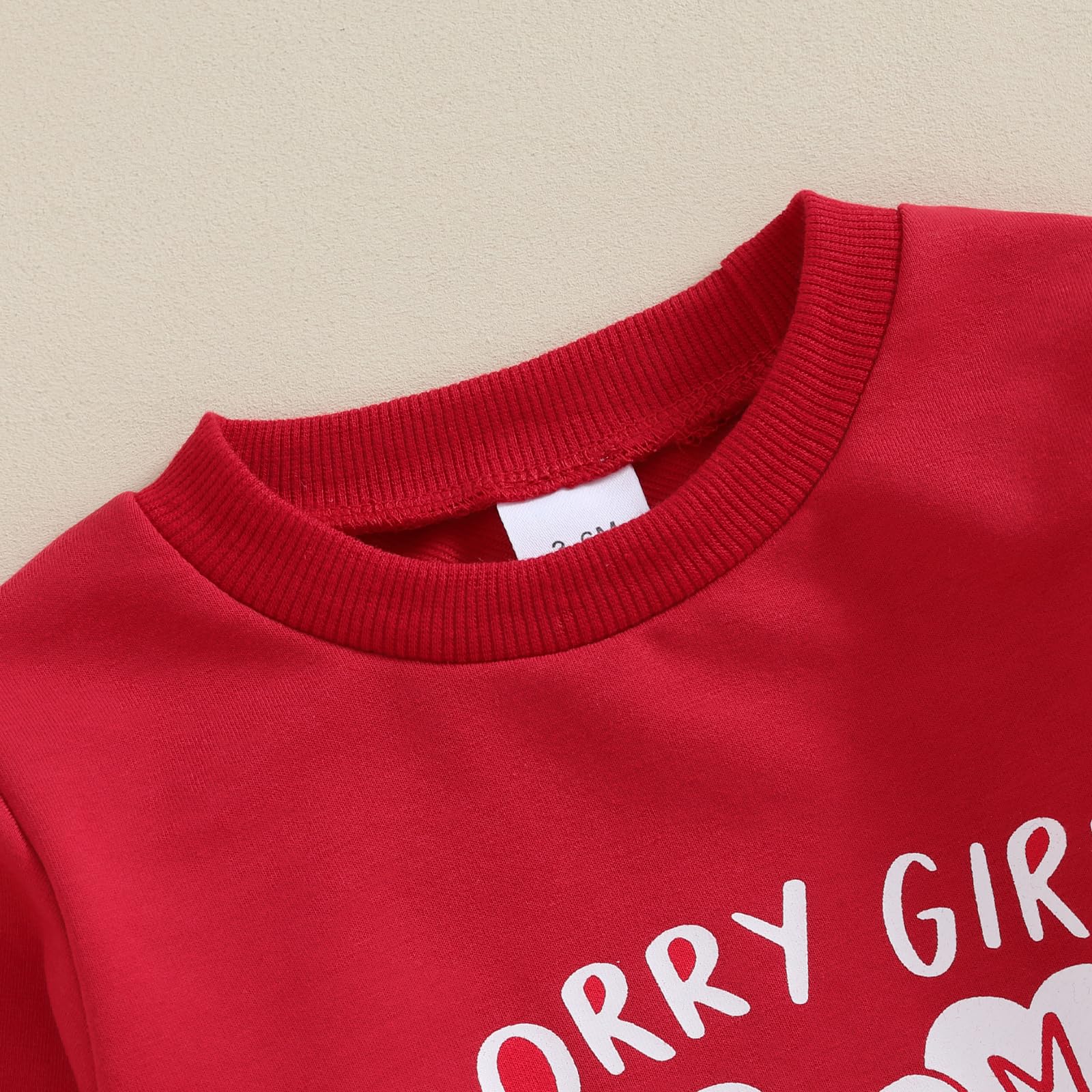 - Q: Does the outfit come with any special features? A: Yes, the outfit features a letter print design stating 'Sorry Girls Mommy is My Valentine', an elastic high waist for comfort, and two pockets on the pants.