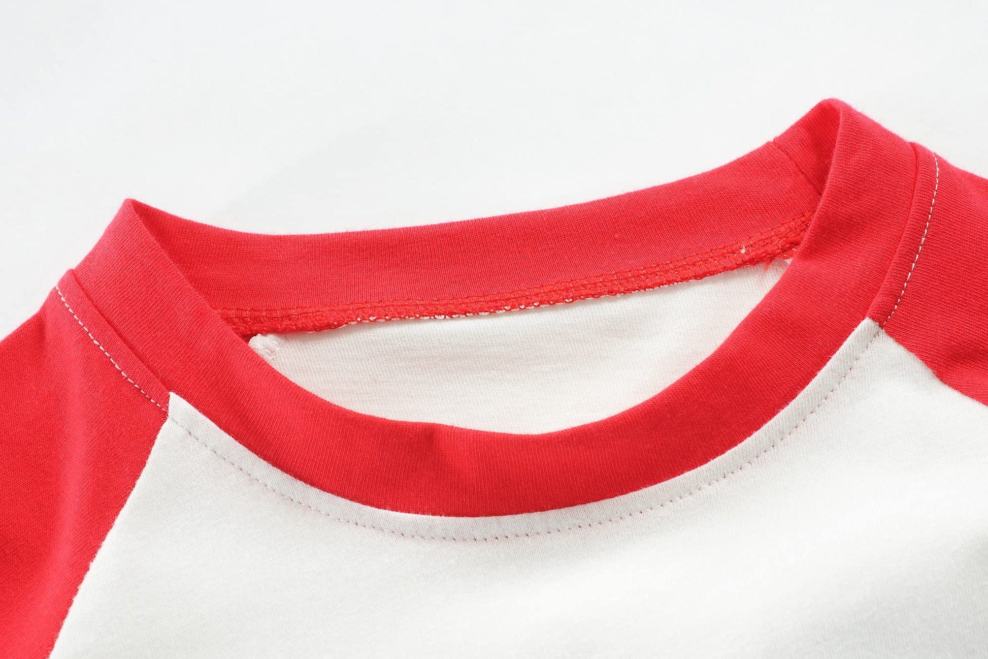 - Q: What colors does this t-shirt come in? A: This specific t-shirt features a red raglan design, but additional colors may be available depending on the retailer.