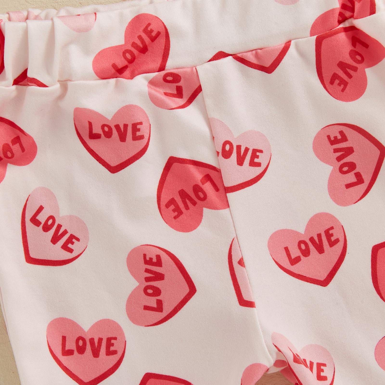 - Q: Is the design of the outfit suitable for a toddler girl? A: Yes, the outfit features an adorable LOVE letter print and heart print, making it stylish and cute for toddler girls.