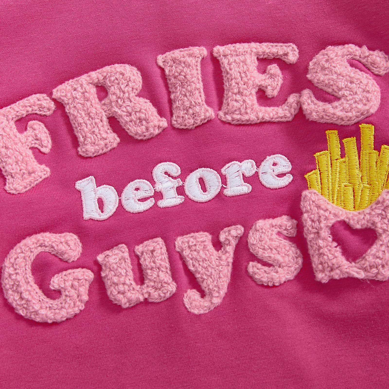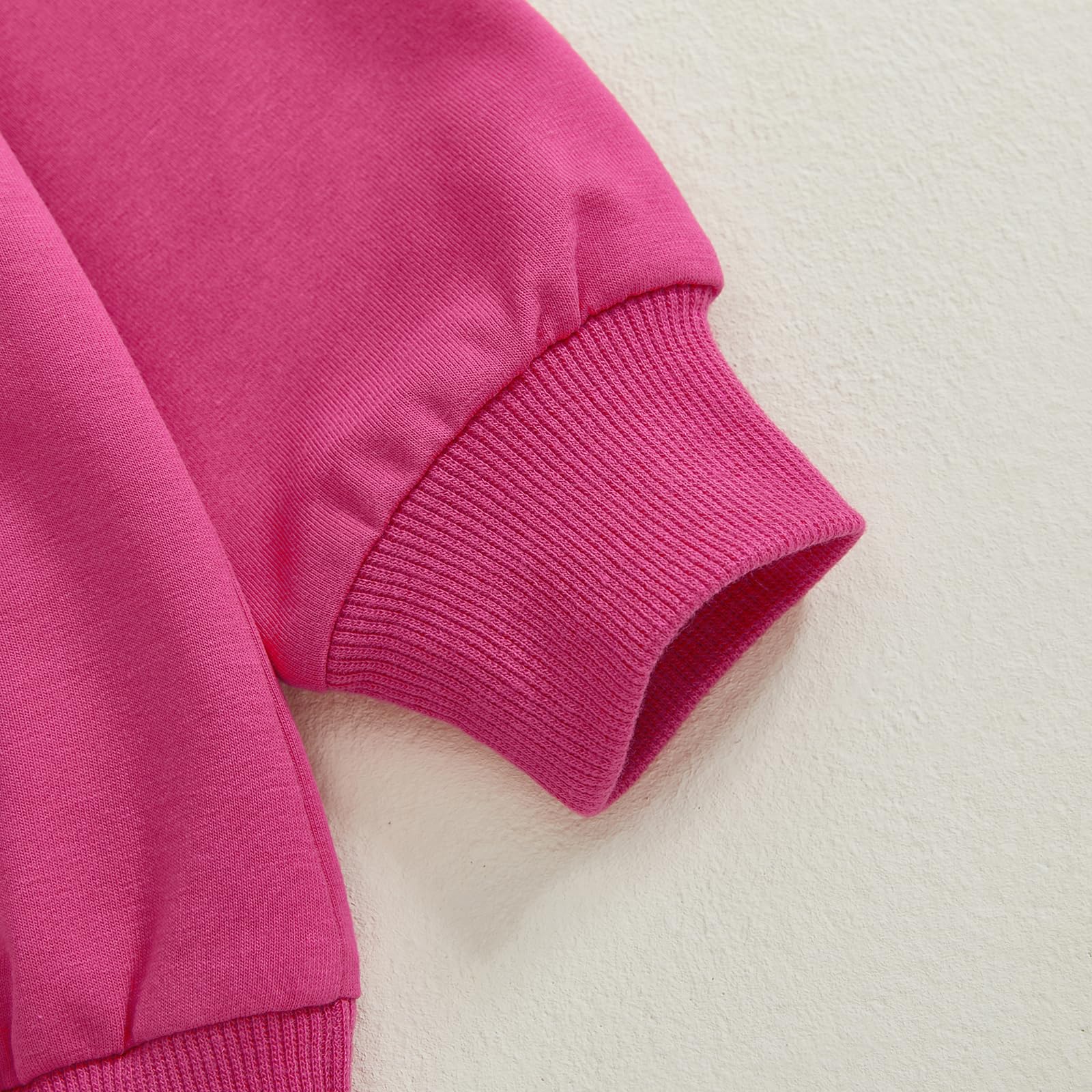 - Q: What is the design of the sweatshirt? A: The sweatshirt features letter embroidery with a fun phrase, making it a stylish choice for toddlers.