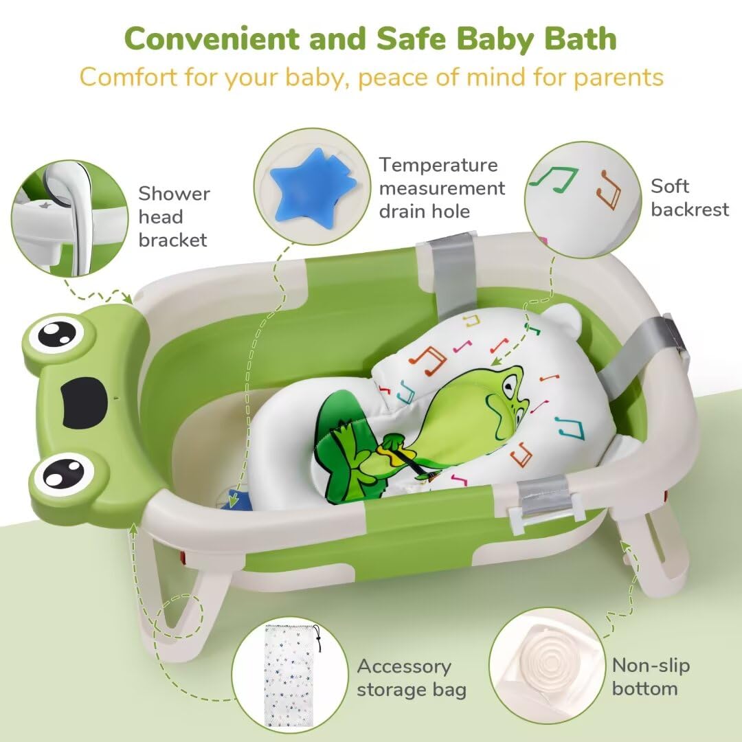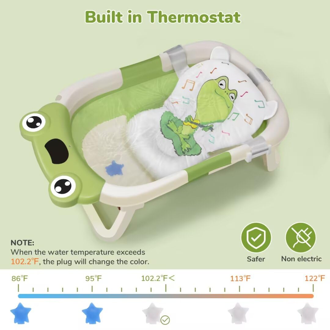 - Q: What are the dimensions of the bathtub when unfolded? A: The specific dimensions are not provided, but the bathtub is designed to accommodate infants comfortably up to 24 months.