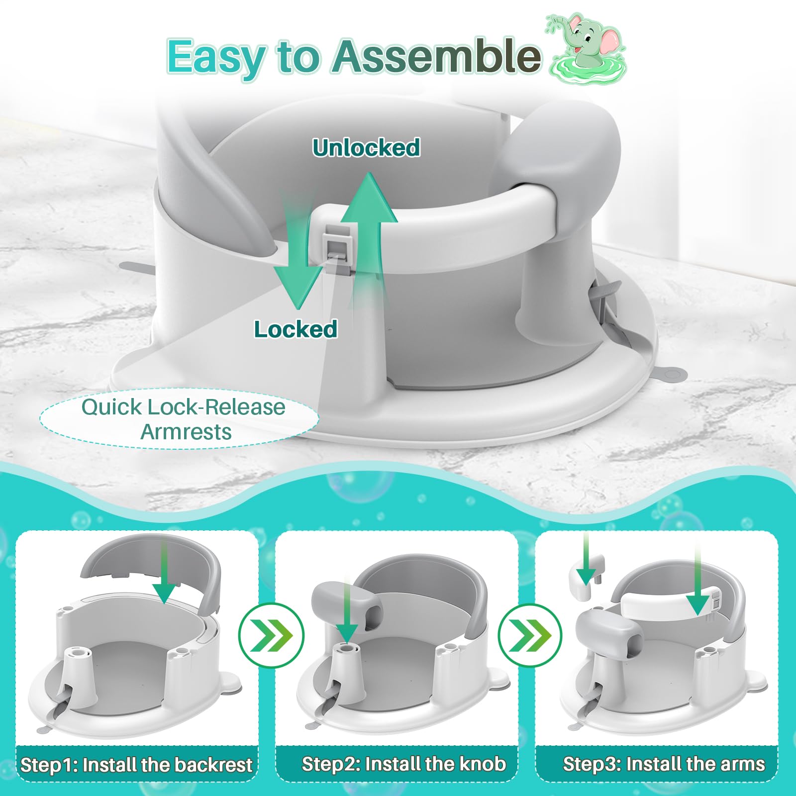 - Q: Does the Inaya Baby Bath Seat require assembly? A: No tools are required for assembly. The Inaya Baby Bath Seat can be set up quickly and easily by clicking the pieces into place.
