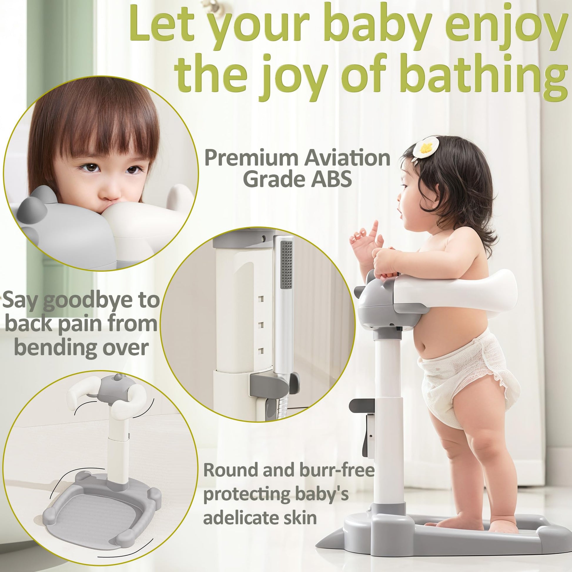 - Q: What material is the Joyfubabe Baby Shower Stand made from? A: The bath stand is made from premium aviation-grade ABS, which is durable, eco-friendly, and resistant to wear and moisture.