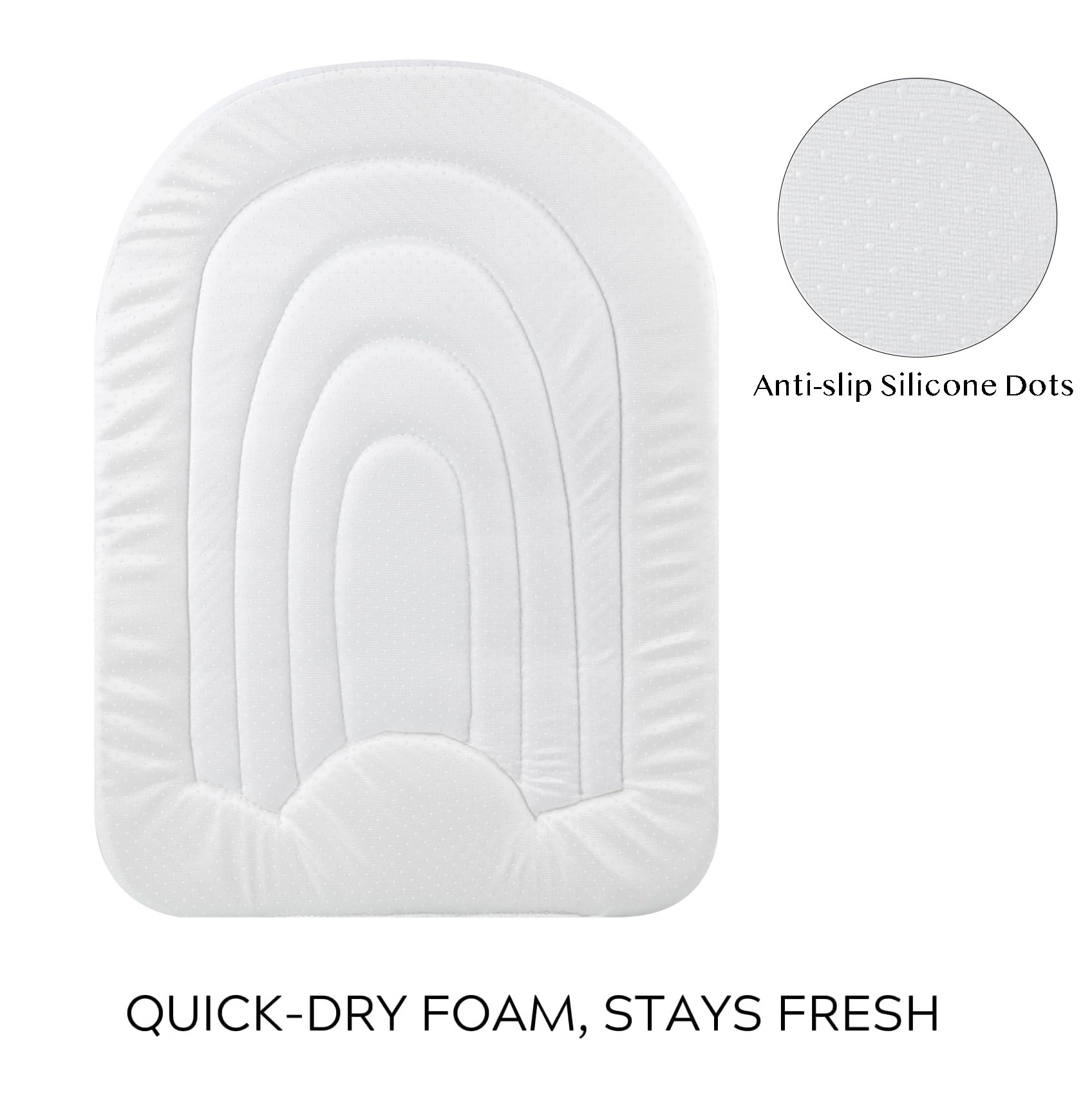 - Q: How does the ergonomic design help during bath time? A: The unique ergonomic design of the bath pad cradles your baby, making sink baths easier and more comfortable for both baby and parent.