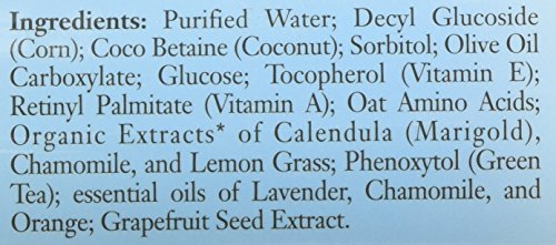 Baby Oh Baby Body Wash Scented 16 oz. LiquidGently cleans baby's body without drying delicate skin. Made with Vitamins A and E and organic extracts of Calendula (Marigold), Chamomile, and Lemon Grass. Scented with an essential oil blend of Lavender, Chamomile, and Orange for a relaxing aromatherapy bathHypoallergenic * No Tears No Artificial Color or Animal Ingredients * Cruelty FreeOther Ingredients: Purified Water, Decal Glucoside (Corn), Coco Betaine (Coconut), Sorbitol, Olive Oil Carboxylate, Glucose, Tocopherol (Vitamin E), Retinal Palmitate (Vitamin A), Oat Amino Acids, organic extracts of Calendula (Marigold), Chamomile, and Lemon Grass, Phenoxytol (Green Tea), essential oils of Lavender, Chamomile, and Orange, Grapefruit Seed Extract (preservative).Warnings: Keep out of reach of children. As with all dietary supplements, consult your healthcare professional before use. See product label for more information.