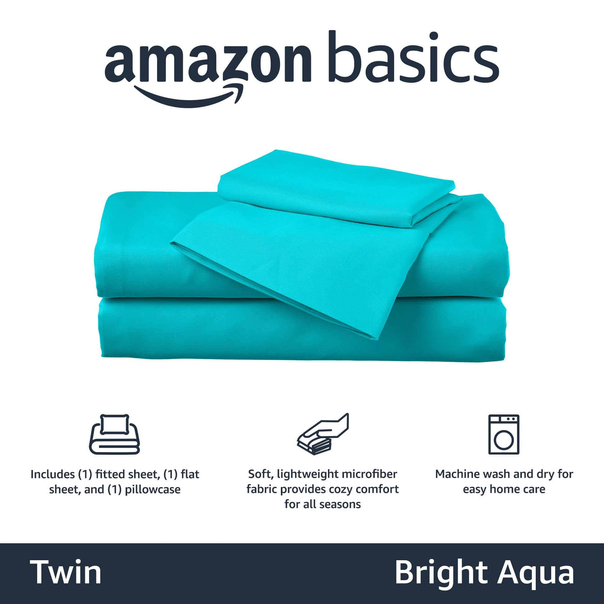 - Q: What is included in the Amazon Basics Kid's Soft Easy-Wash Lightweight Microfiber 3-Piece Sheet Set? A: The set includes a flat sheet, a fitted sheet, and a standard size pillowcase. Please note that pillows are not included.