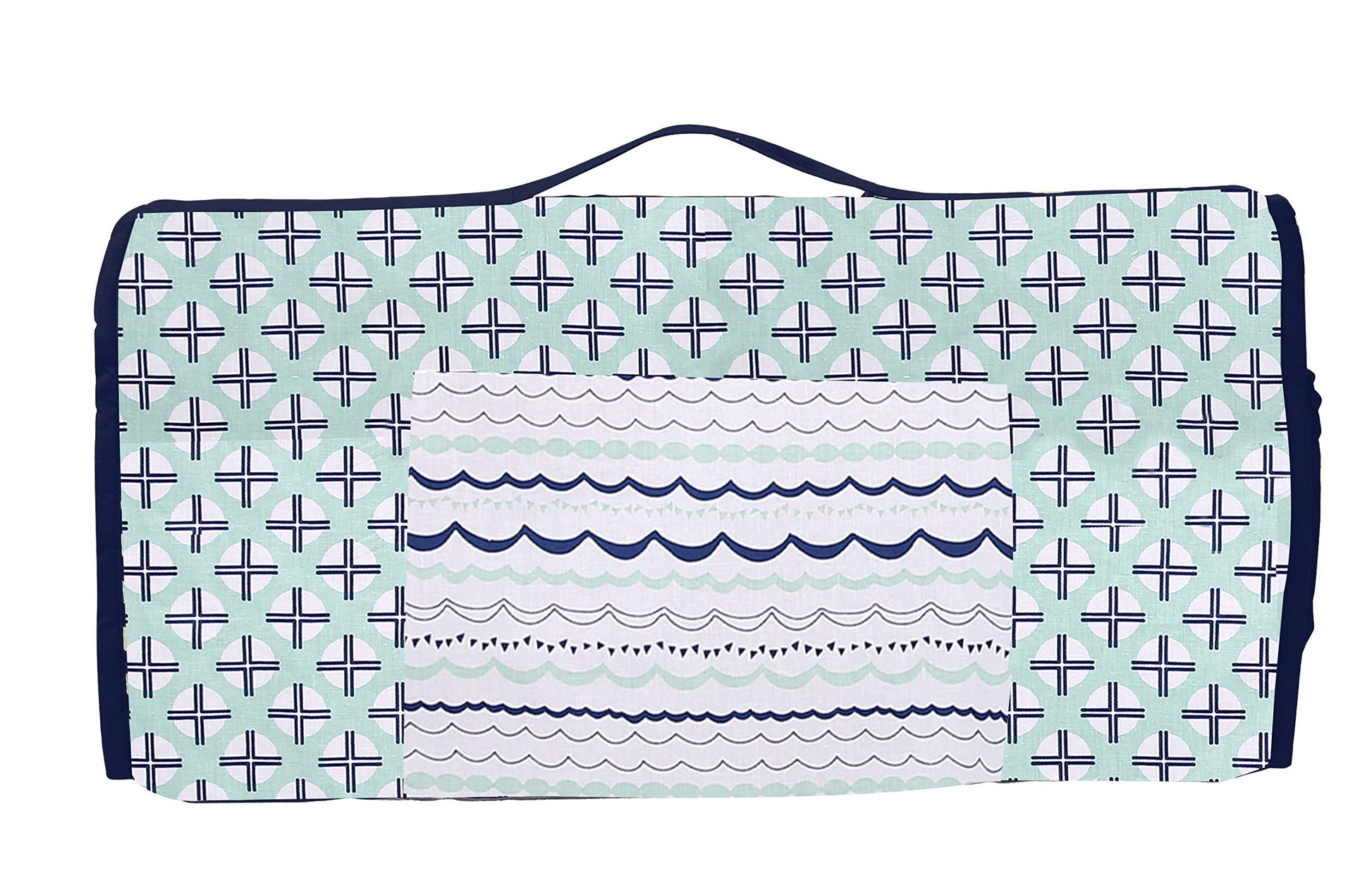 Provide your kids with all the comfort - anywhere they need. Nap mats can be placed anywhere in the house and even outside. It can also be used as a sleeping bag when go for any picnic or trekking. It's easy to carry this light weight portable bed with attached pillow and quilt. Nap mat rolls up easily with fastening straps for storage and has carrying straps for travel.Bacati Transportation Blue Nap mat includes single piece bed set which has attached quilt and pillow to the mattress. Features Icons of modes of transport on white background with Blue cording. It includes 100% cotton top with polyfill insert. Measures 20' W x 50' L. Machine wash.Coordinates well with other pieces in Bacati Transportation Blue Bedding Collection.